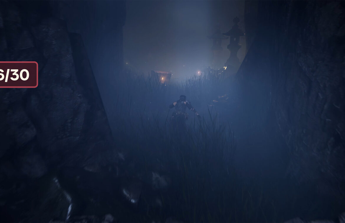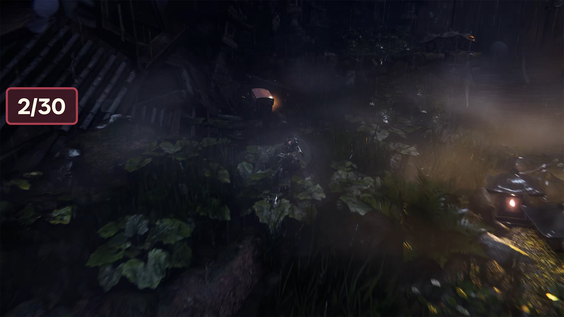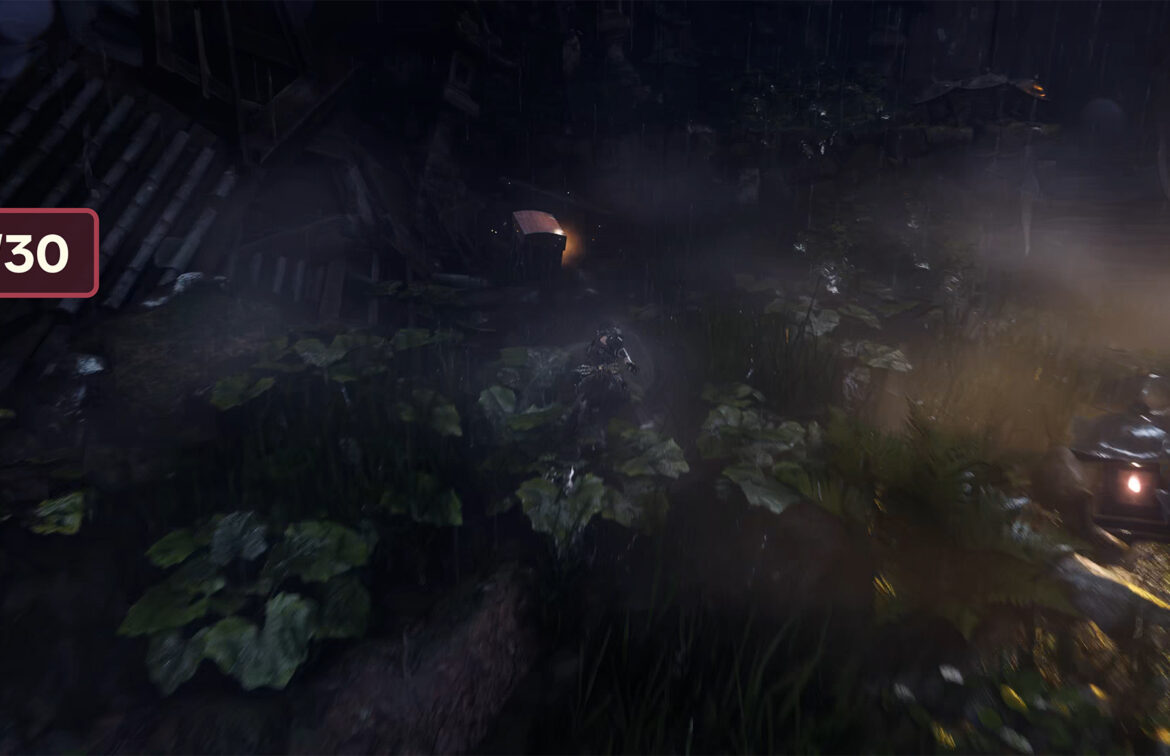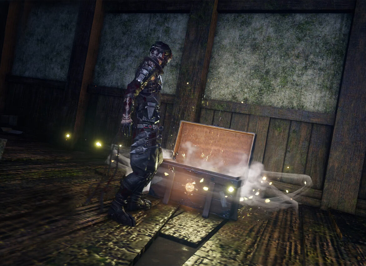 When you exit this building, use your Caddis Wire to reach the roof of another building. Tengu is walking here, and if you jump onto the roof in time, you can assassinate him without engaging in direct combat. After that, jump back into the hole in the roof. There will be one enemy waiting for you inside the building, so you can quickly deal with him and open the twentieth chest to get Kongou Iron Brew.