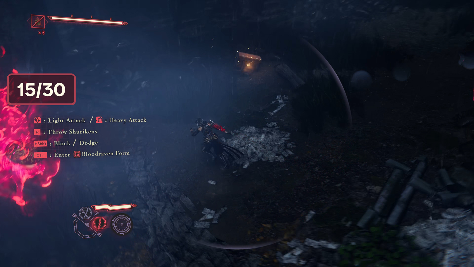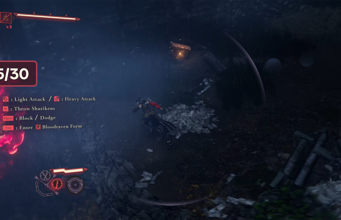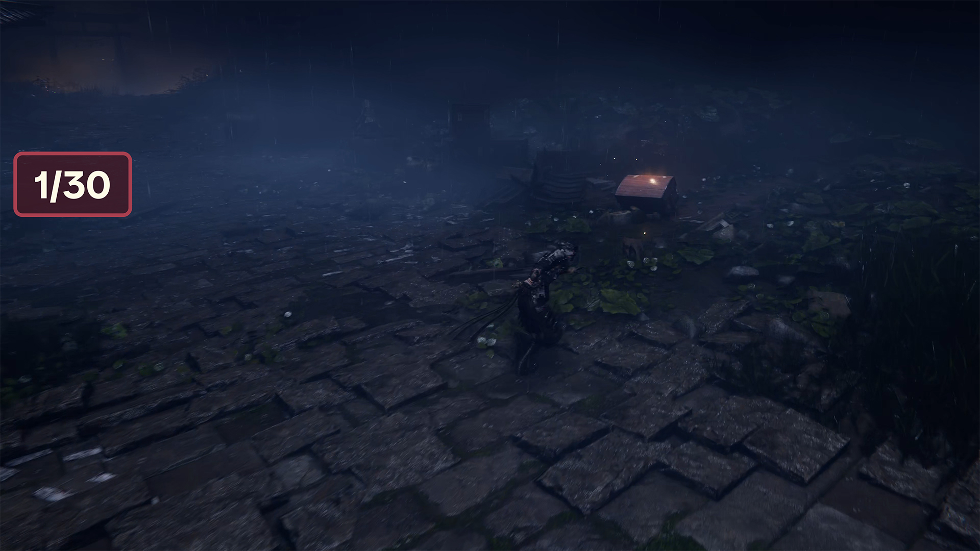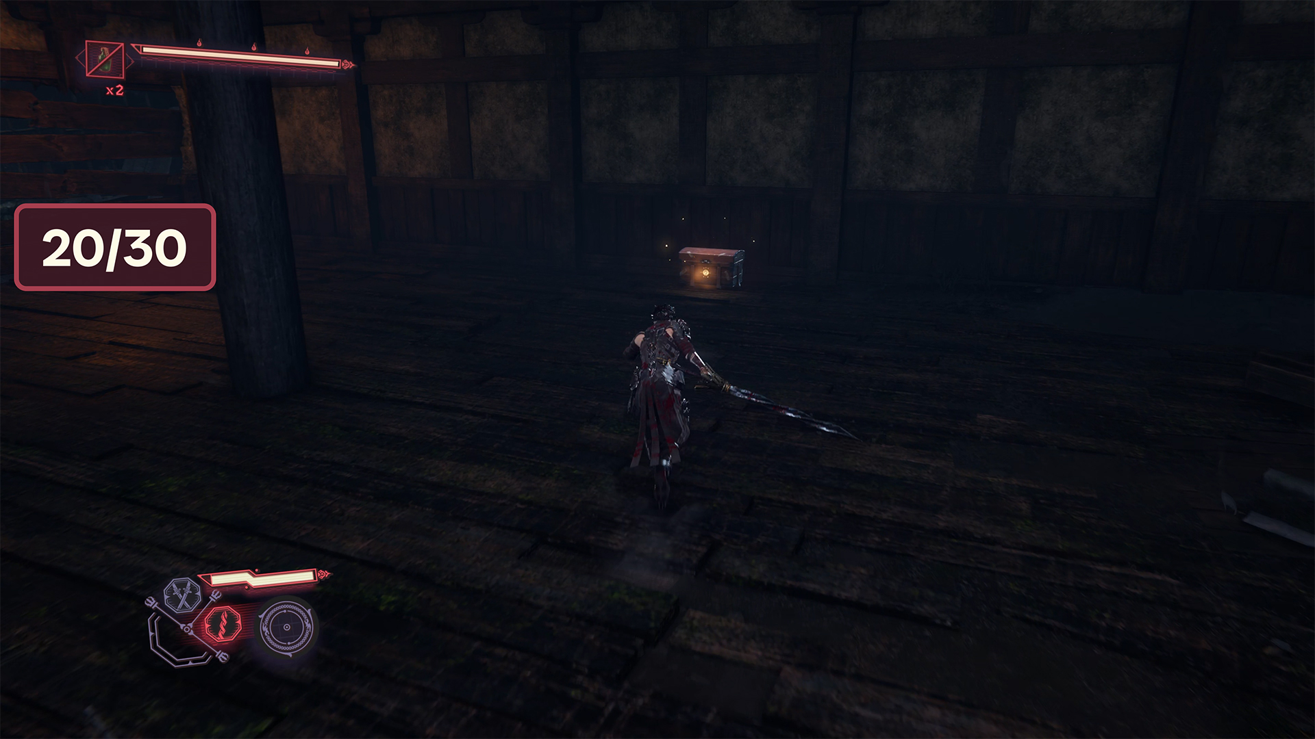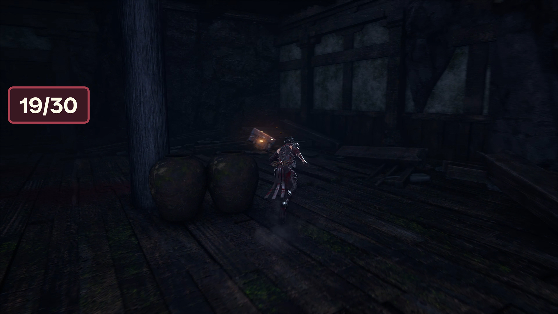 Next, you will find yourself in an interesting location that resembles a village. After completing the side quests, you will find yourself on the roof of a building with a hole in it. Jump inside the building. Here you must defeat your enemies, and then you will be able to open the eighteenth chest with Life Elixir and the nineteenth chest with Crimson Blood Pellets.