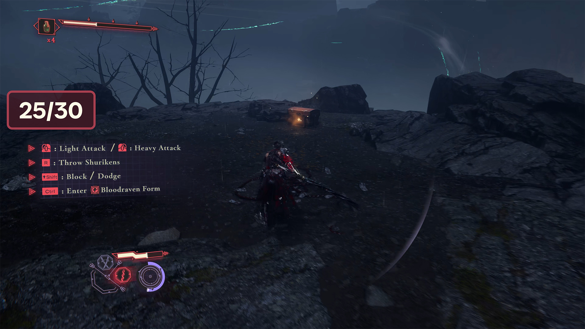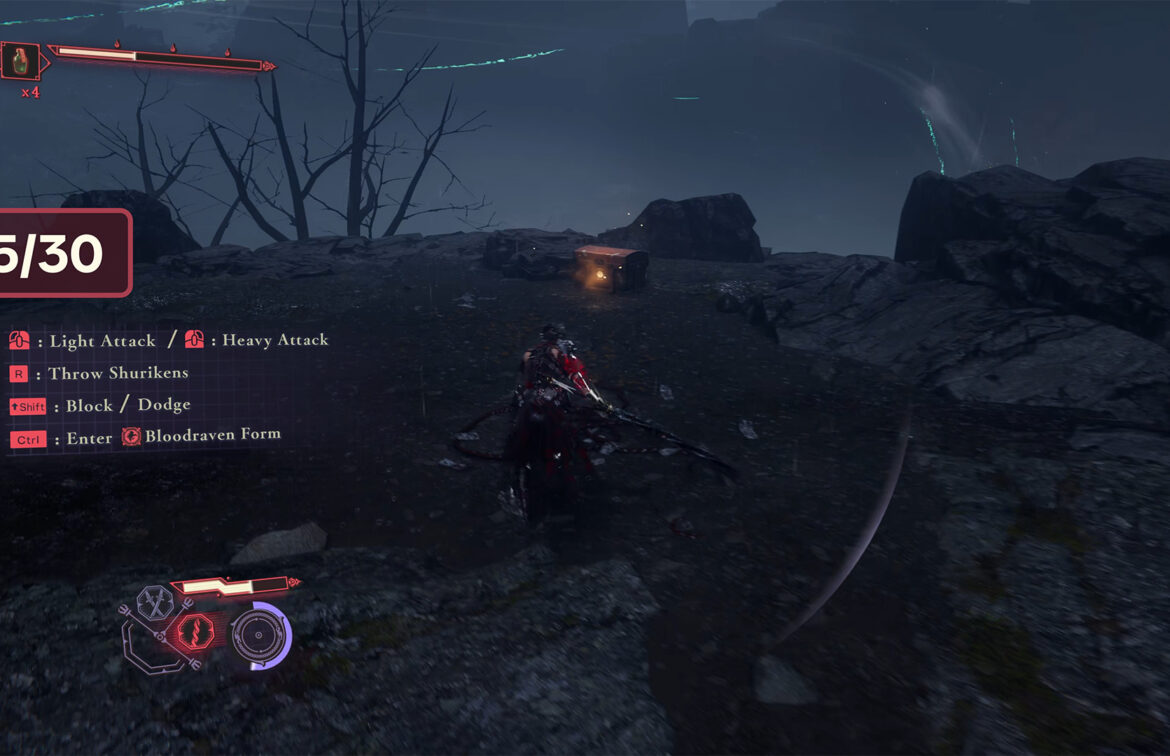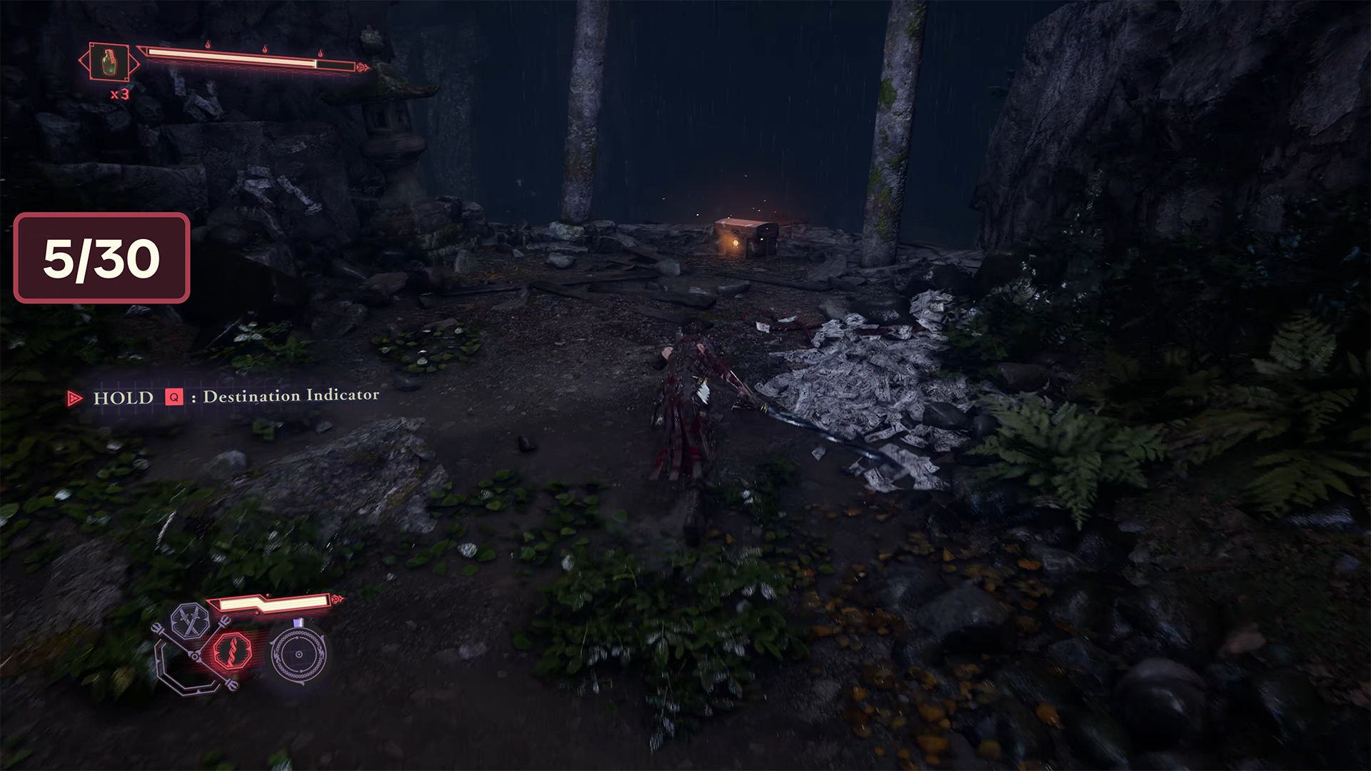 Next, you will need to use your Dragonfly Glider. Fly with the wind and dodge the rocks to avoid damage. After a fairly long flight, you will land on a rocky area where you will find the twenty-eighth chest. Open it to obtain Crimson Blood Pellets.