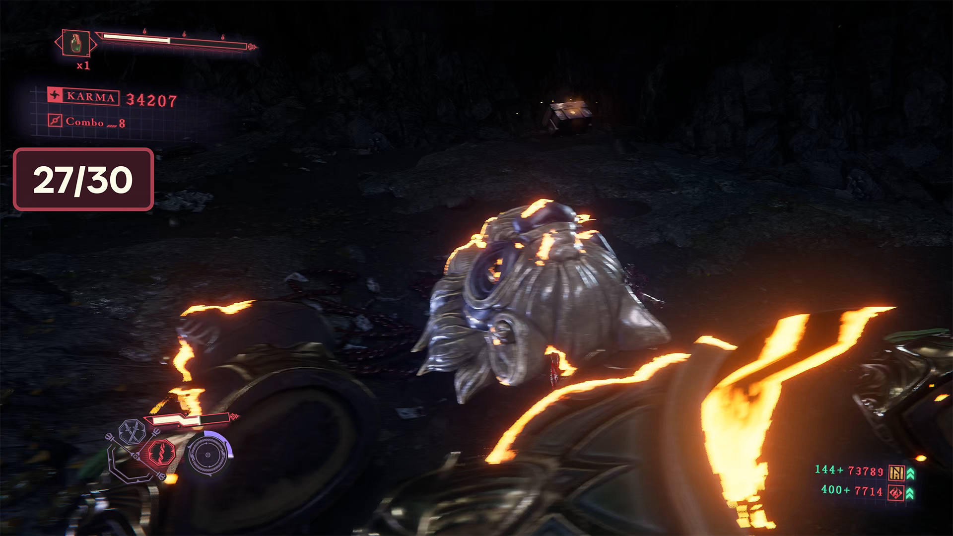 You should deal with it before opening the chest so that it doesn’t get in your way. In the chest, you will find the Divine Life Elixir. After that, you should look down from this place and see a platform below where another teapot is located. Next to it is the twenty-sixth chest. Jump there and neutralize the enemy. From the chest, you will receive Incense of Rebirth.