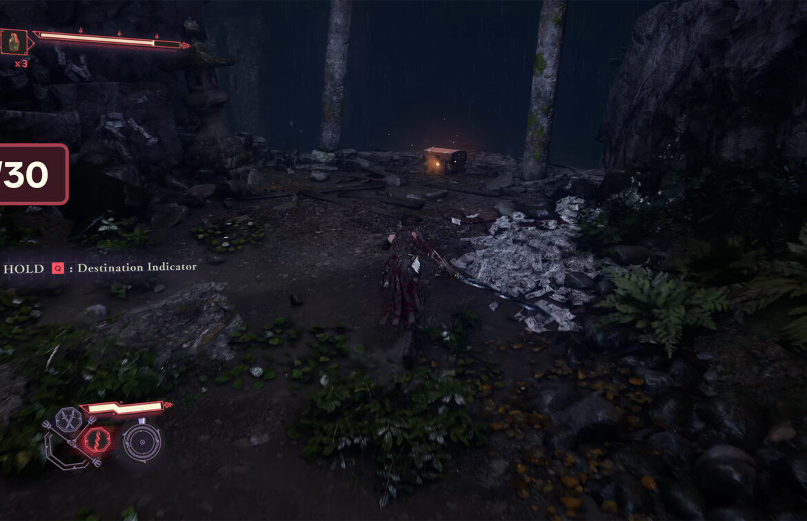 When you proceed further and overcome all obstacles, you will reach an area where you will encounter the first Oni in Raging Valley. The seventeenth chest is located nearby. After the battle, explore the area thoroughly so you don’t miss it, as it is easy to overlook. Inside the chest, you will find a Life Elixir.