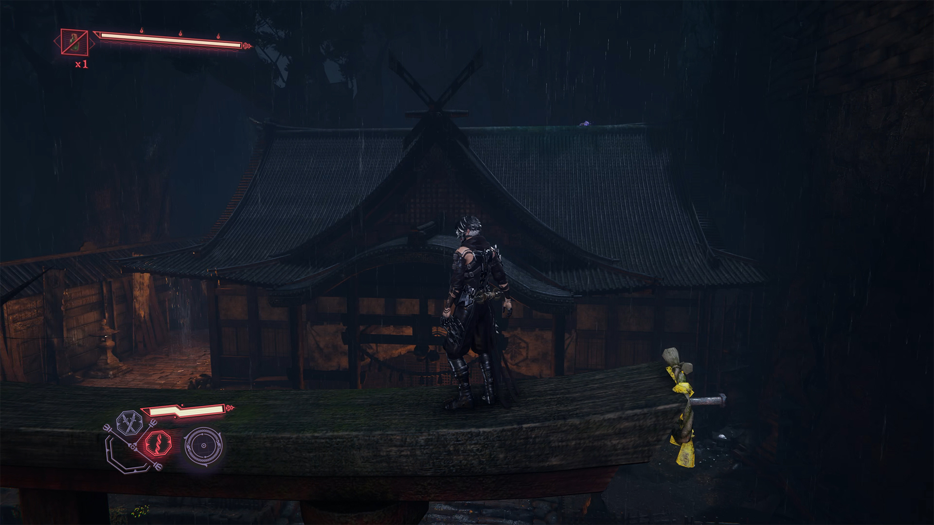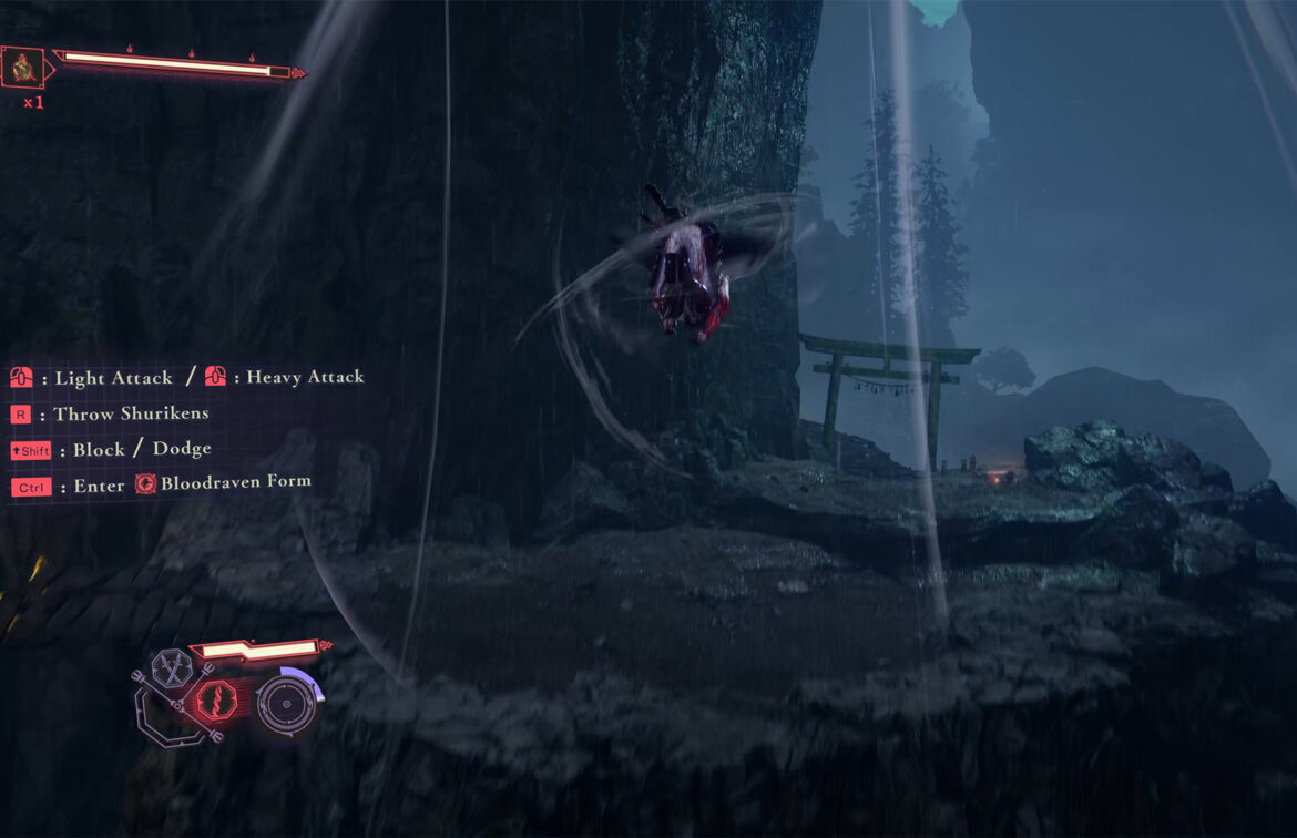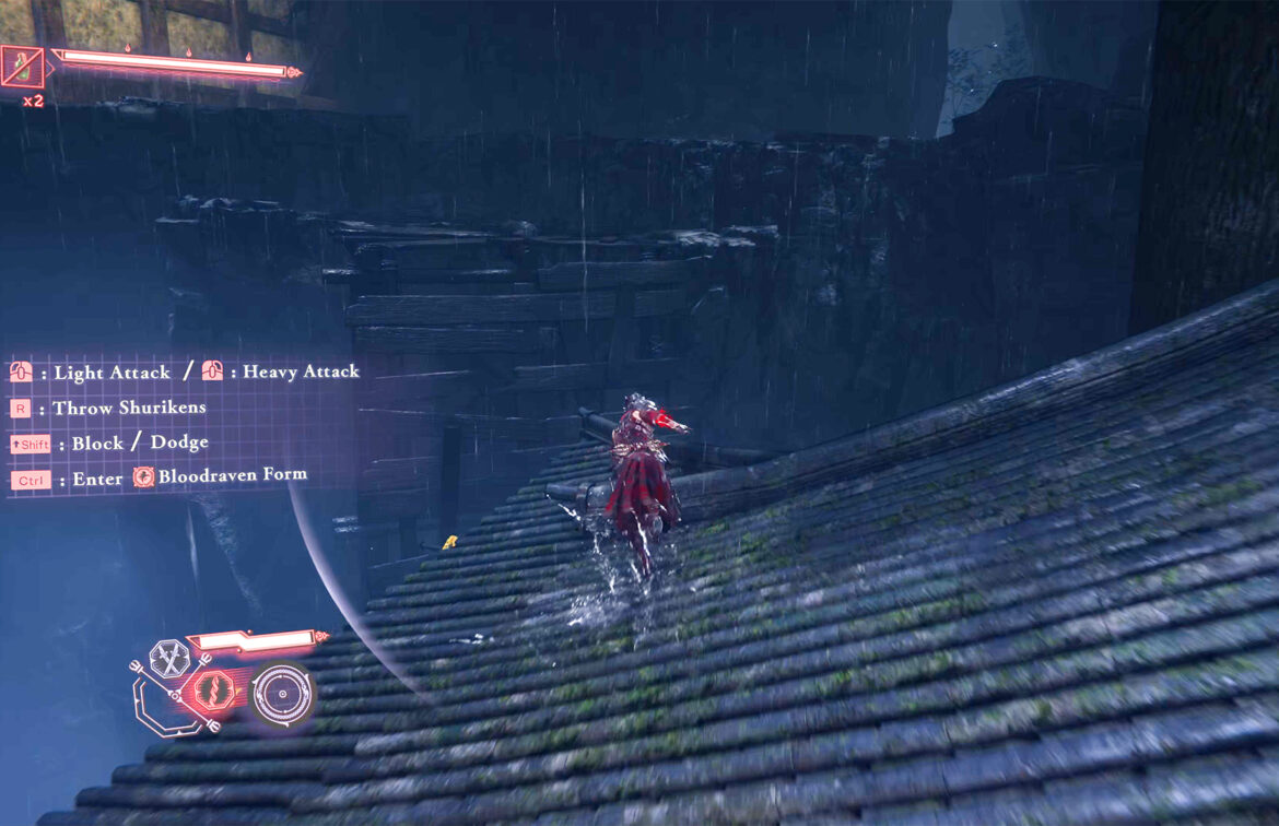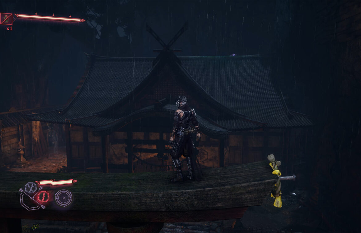 Moving further along the plot, you will find yourself in this place. Here you need to jump to the other side across the gorge, but don’t rush to do so. Look down. There you will see a chest, jump there. Here you will fight enemies. After that, you will be able to open the chest, then find another one a little further. After that, move forward through the gorge and along the way you will see a location where you can complete a trial that will earn you NinjaCoin if you win.