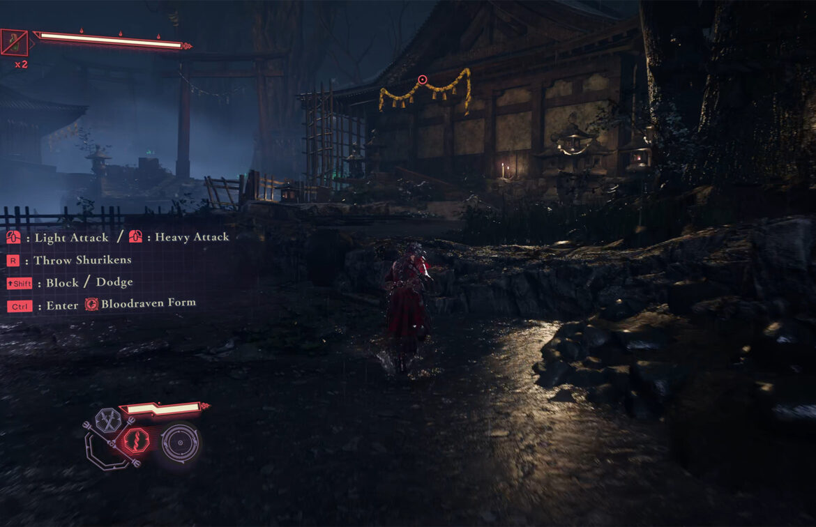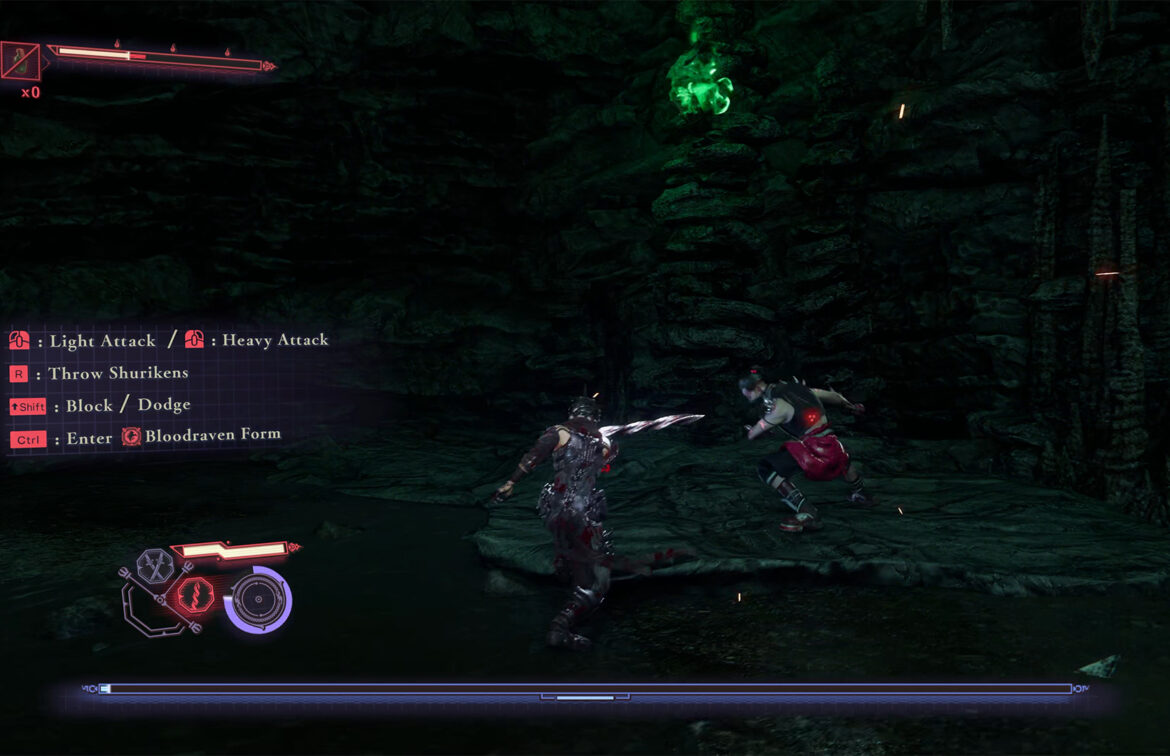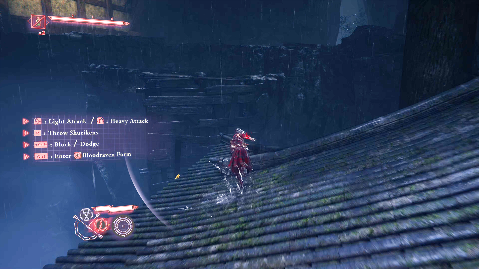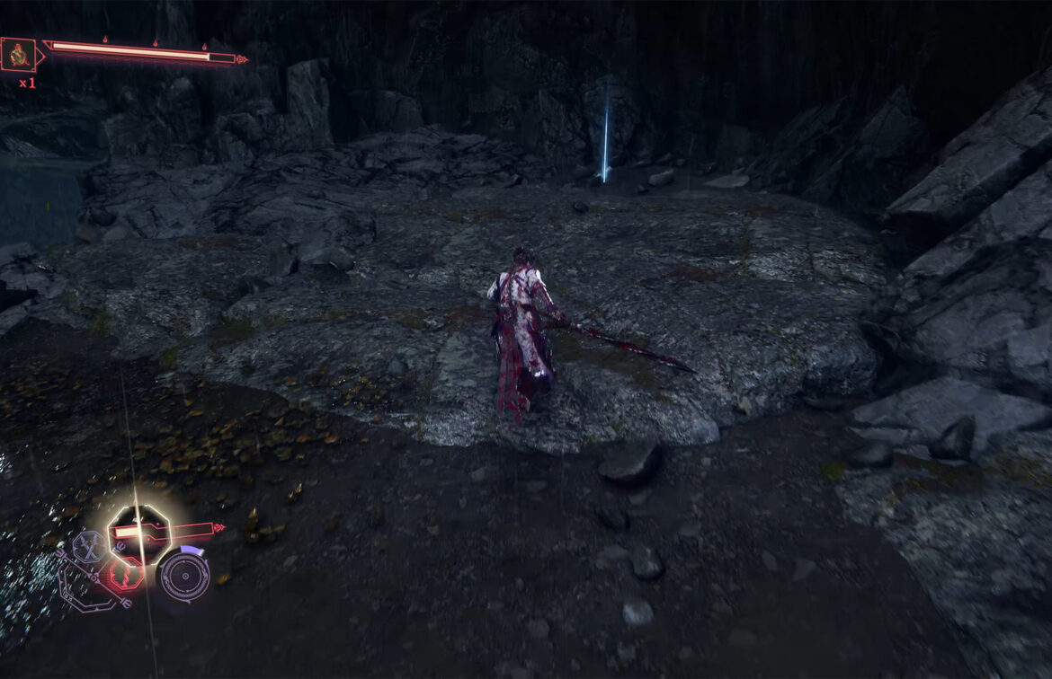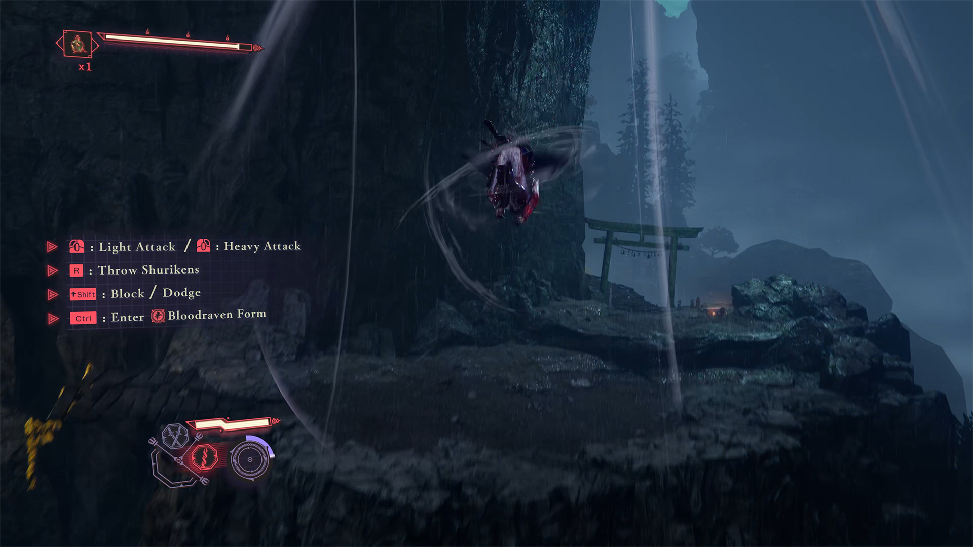 Moving further along the plot, you will find yourself in this place. Here you need to jump to the other side across the gorge, but don’t rush to do so. Look down. There you will see a chest, jump there. Here you will fight enemies. After that, you will be able to open the chest, then find another one a little further. After that, move forward through the gorge and along the way you will see a location where you can complete a trial that will earn you NinjaCoin if you win.