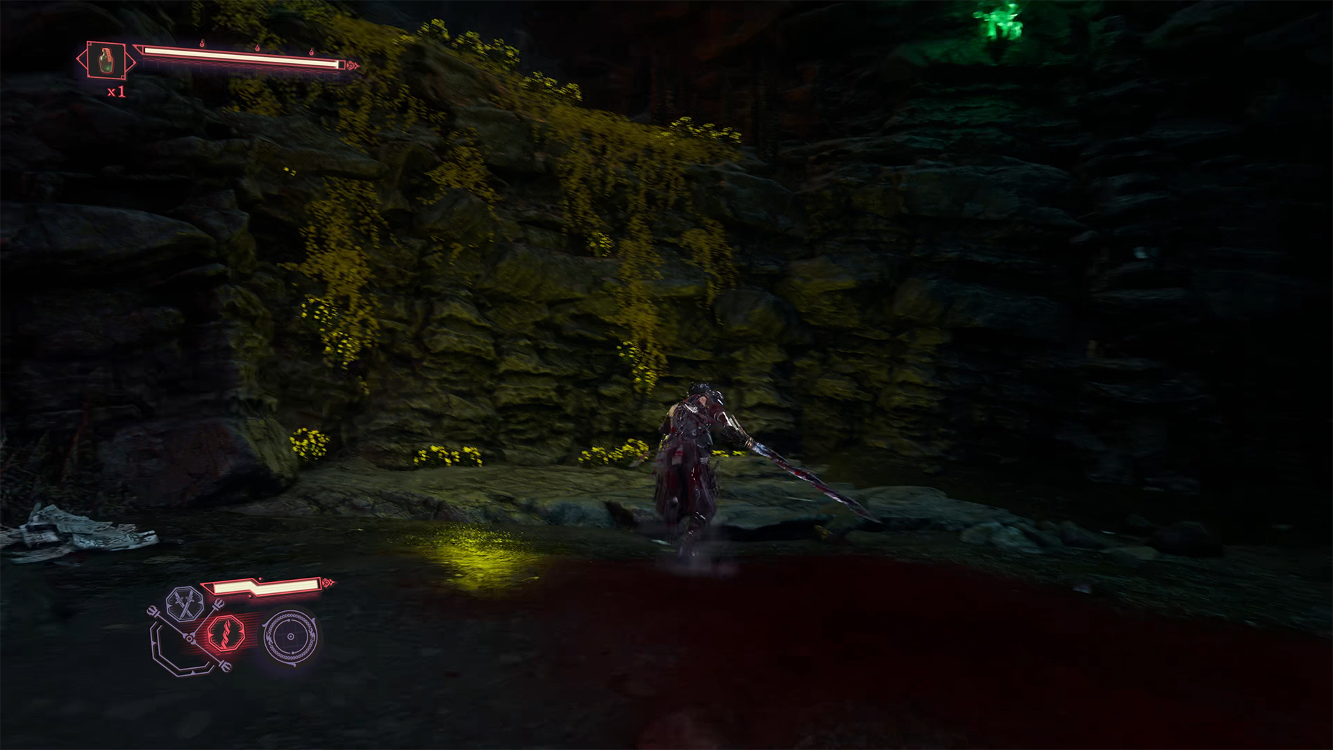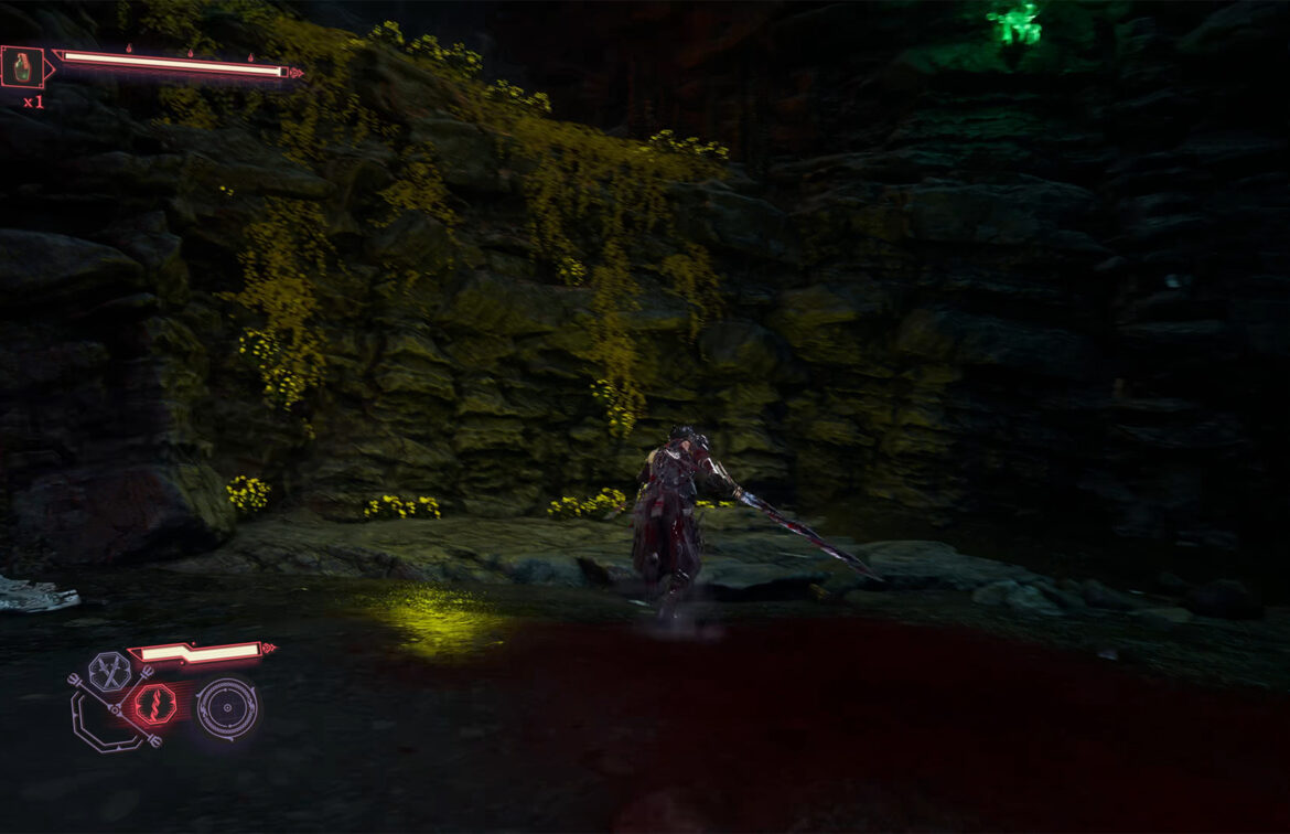 When you enter the cave in this chapter and walk a little, you will come across this location. You will have a battle with an enemy on the platform. After that, turn left and you will see a wall with yellow plants. Climb up and turn left at the fork. Here you need to slip under the stone wall and you will find yourself in the room where Gourdy is located.