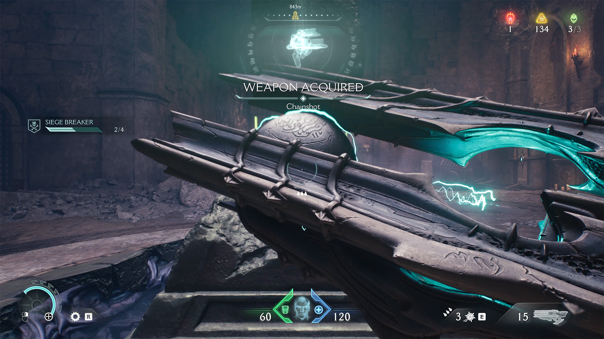 The Chainshot has a unique charging mechanic: holding down the fire button allows you to accumulate energy, which increases the power of the shot. A fully charged shot explodes on impact, damaging all enemies within the blast radius. This makes the Chainshot an effective tool for fighting groups of enemies and destroying armor. The Chainshot upgrade system consists of three levels. The first level, Eldritch Blessing, allows you to instantly charge your next shot after successfully parrying a Hell Surge attack, greatly increasing the weapon’s effectiveness in dynamic combat.