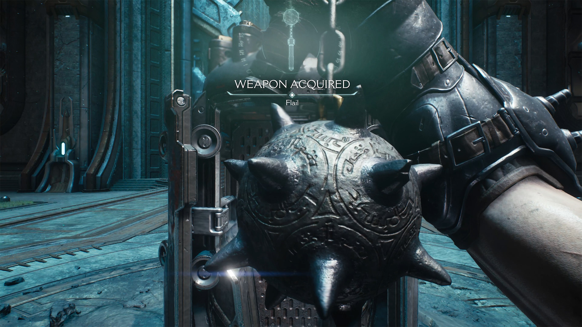 The second melee weapon is the Flail. This weapon is available in Chapter 6; it combines armor reduction with solid damage, making it ideal for extended combat. The Flail sacrifices elegance for medieval brutality. The Flail is a spiked, chained ball that explodes on impact and destroys armor.