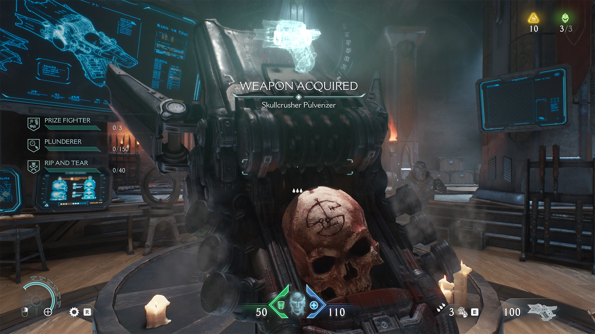 Once all upgrades are unlocked, the Hunter skill challenge becomes available, which requires you to hit demons with the Pulverizer’s charged attack a certain number of times (250 hits), and successful completion of the challenge rewards the weapon with a golden “Conqueror” skin. With its bone charge, wide coverage, and ability to build up power in close combat, the Pulverizer becomes a reliable tool for crowd control and maintaining an aggressive shooter-style pace of combat.