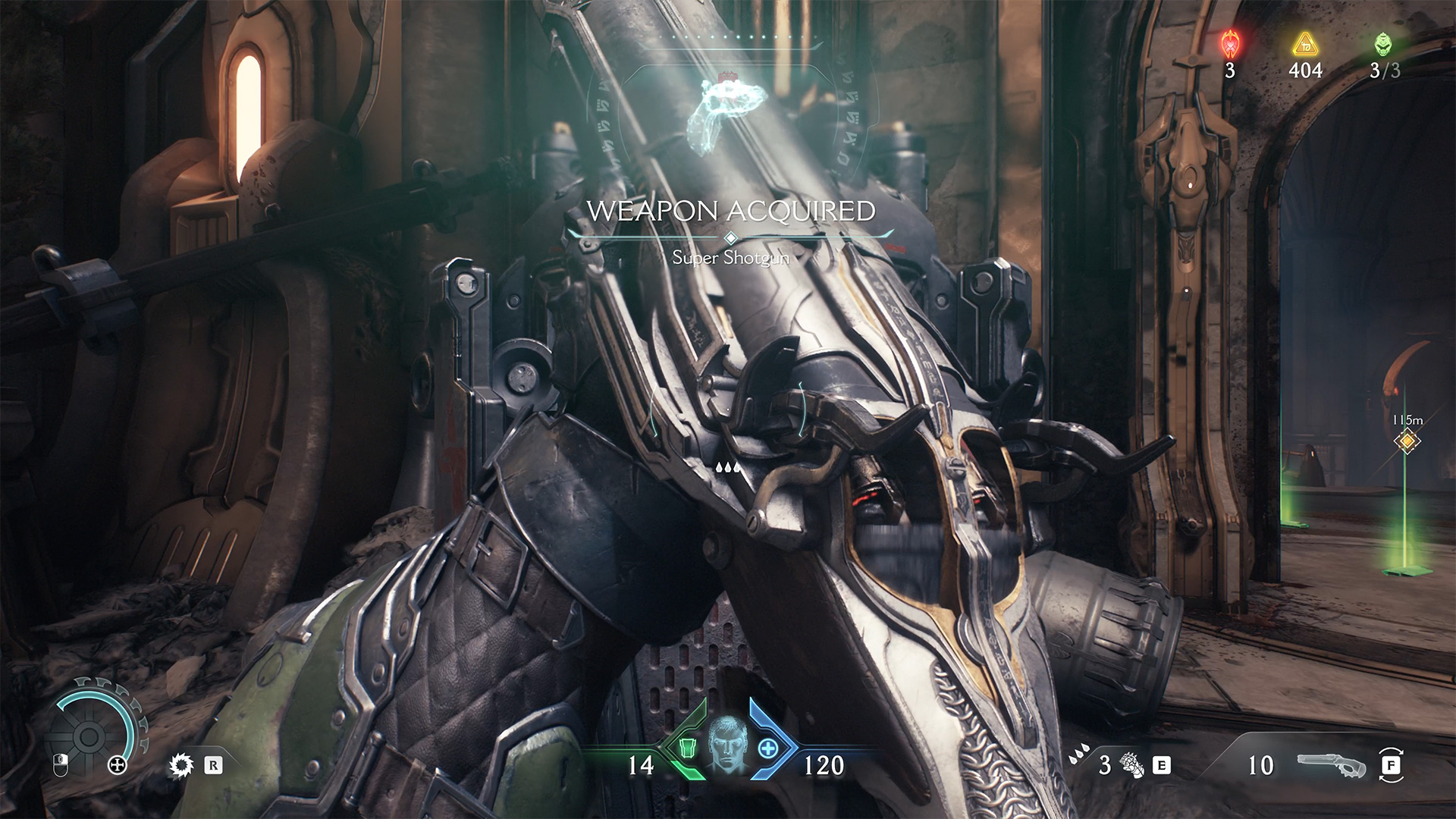 The Super Shotgun appears in Doom: The Dark Ages in the fifth chapter, “The Holy City of Aratum,” after encountering the enemy “Enforcers” who summon demon reinforcements. The weapon itself drops from a container that appears next to the gate — just press the G key (or the equivalent on consoles) to get it.