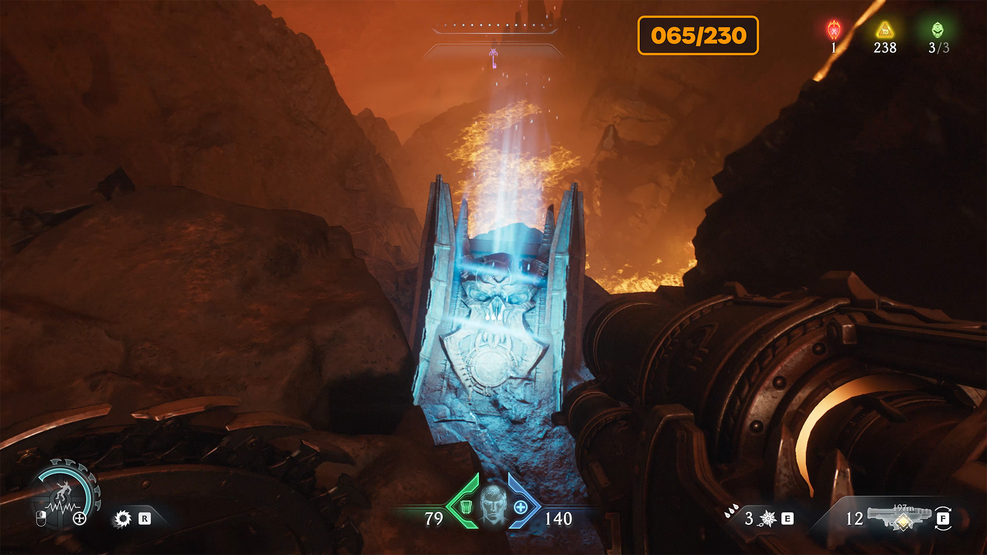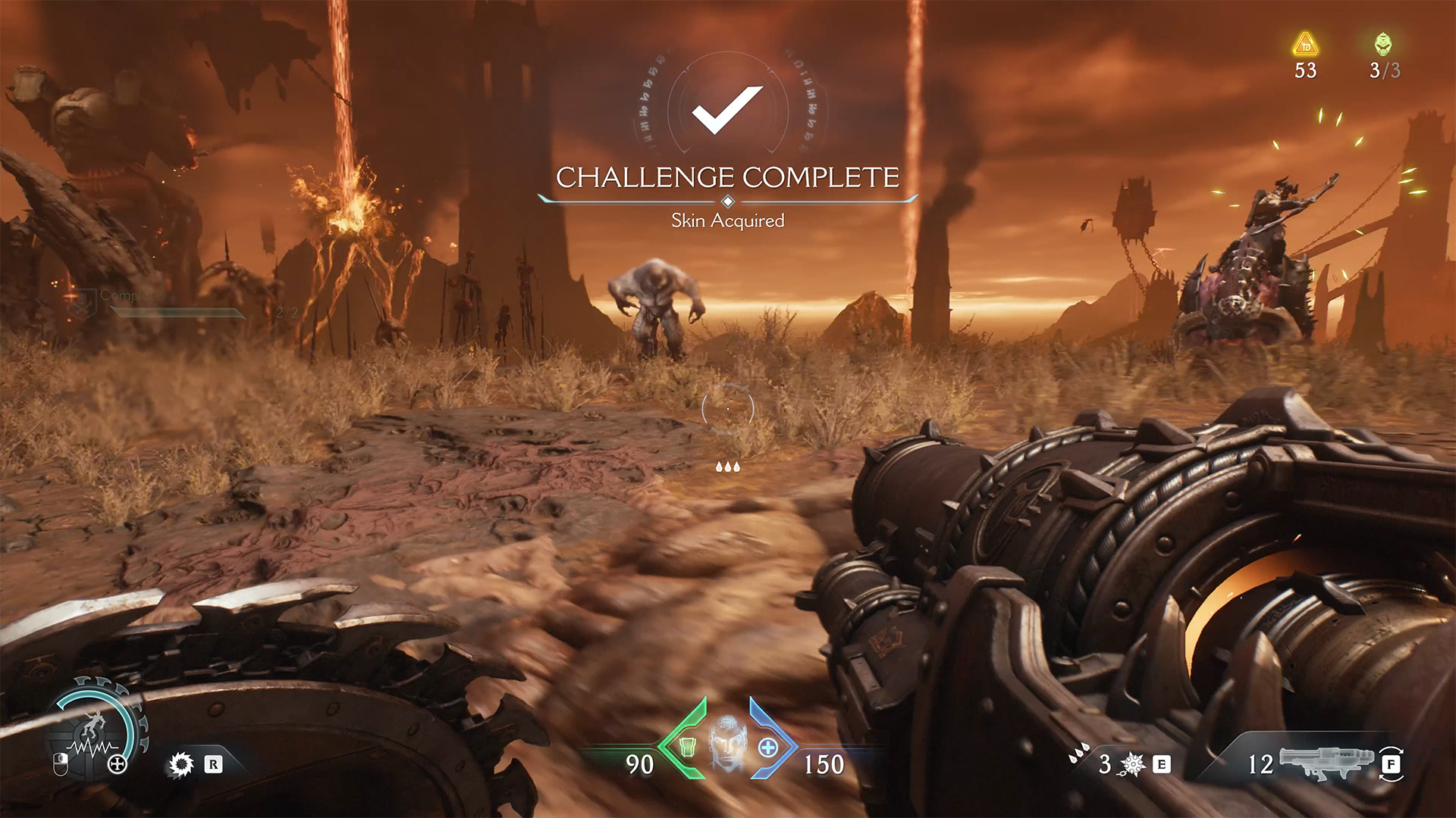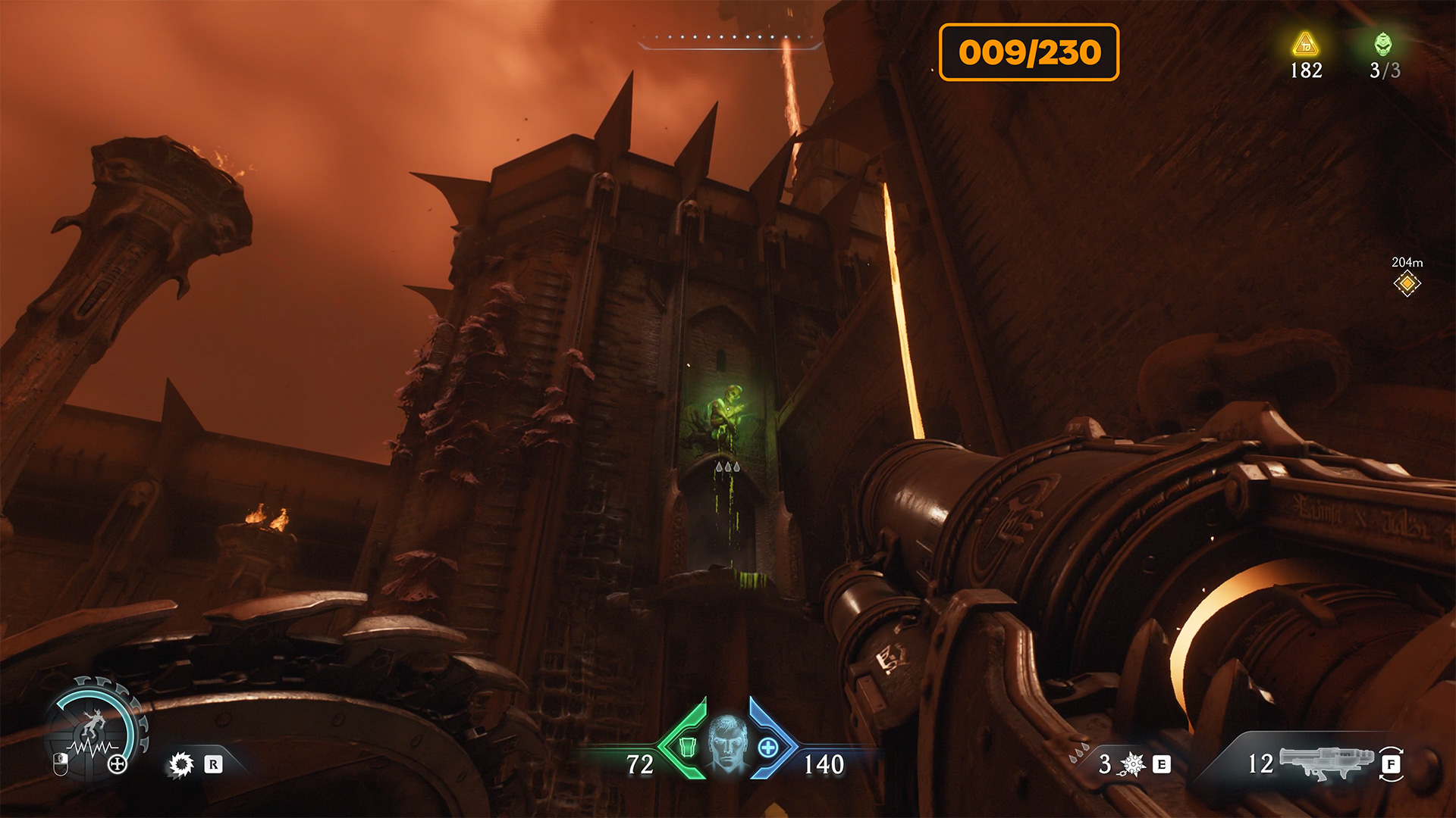 After the previous battle and the destruction of the second cannon, look at the map for the next red zone nearby. Here you will find the second Gore Nest. Destroy it and the second challenge will be completed. Many monsters will appear, and at the end of the battle you will face another elite enemy. After defeating it, you will automatically receive Demonic Essence Ammo.