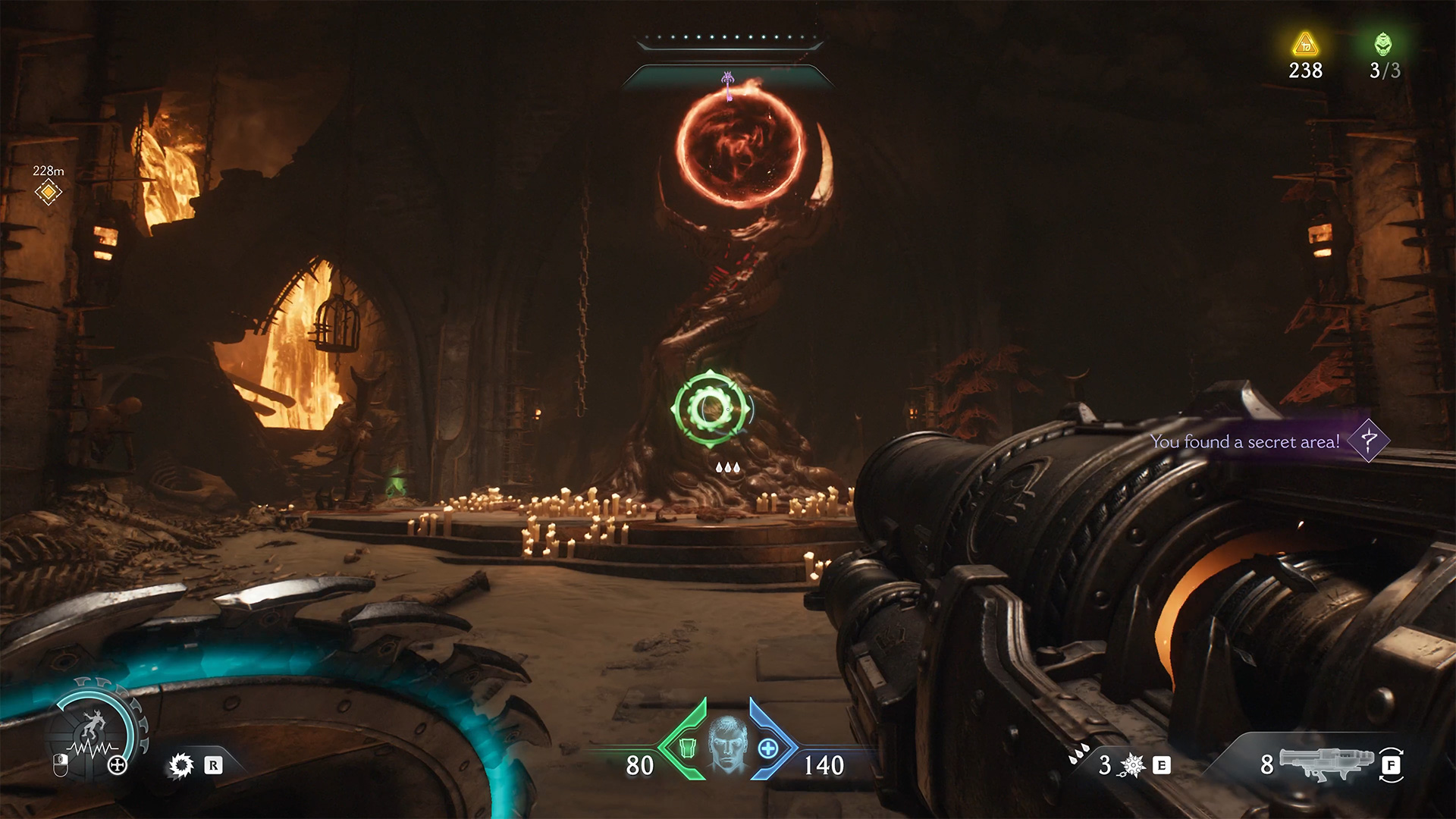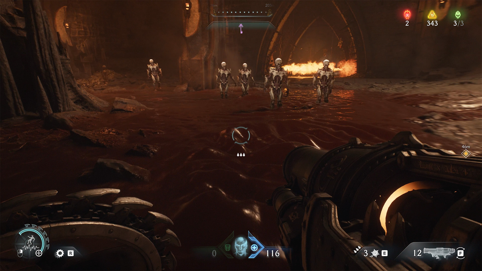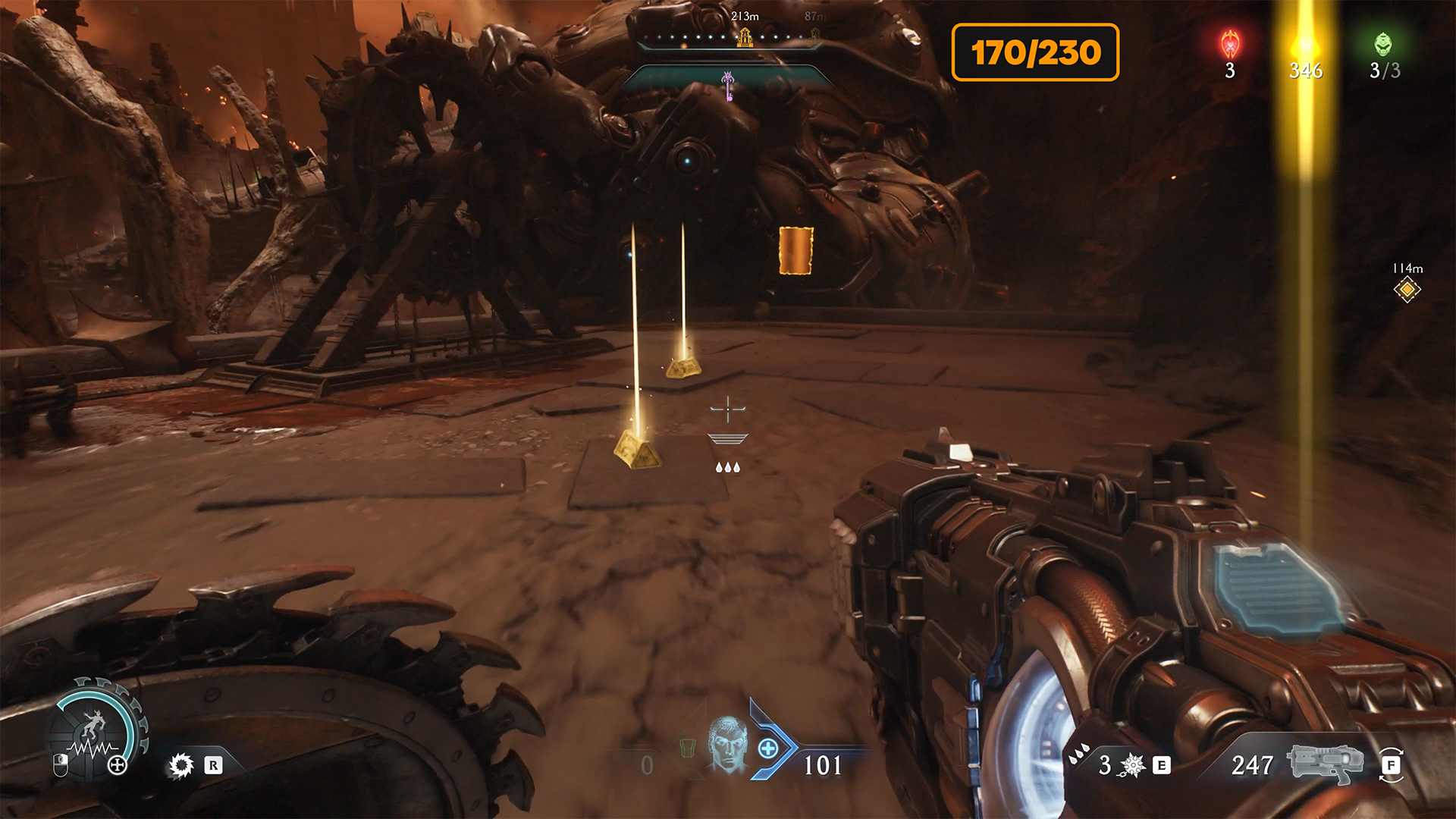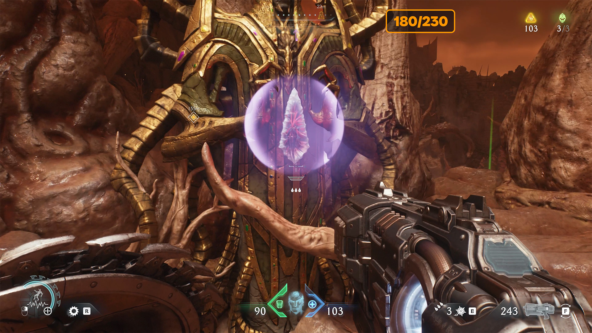 After the previous battle and the destruction of the second cannon, look at the map for the next red zone nearby. Here you will find the second Gore Nest. Destroy it and the second challenge will be completed. Many monsters will appear, and at the end of the battle you will face another elite enemy. After defeating it, you will automatically receive Demonic Essence Ammo.