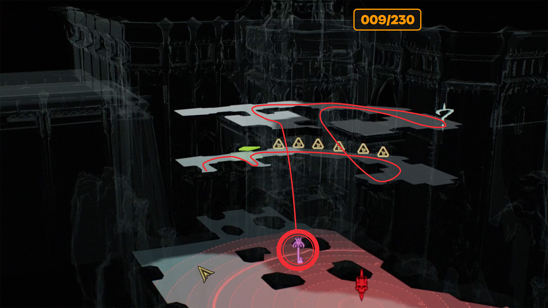 From the second Sentinel Shrine, move to the next large red area. You need to go through a special room that I have marked on the map. In the room, you can collect 22 gold coins scattered on the floor. Be sure to jump onto the ledge on the right so you don’t miss the gold there. Be careful in the room, as tentacles jump out of the ground and attack you. Pass through this area as carefully as possible.