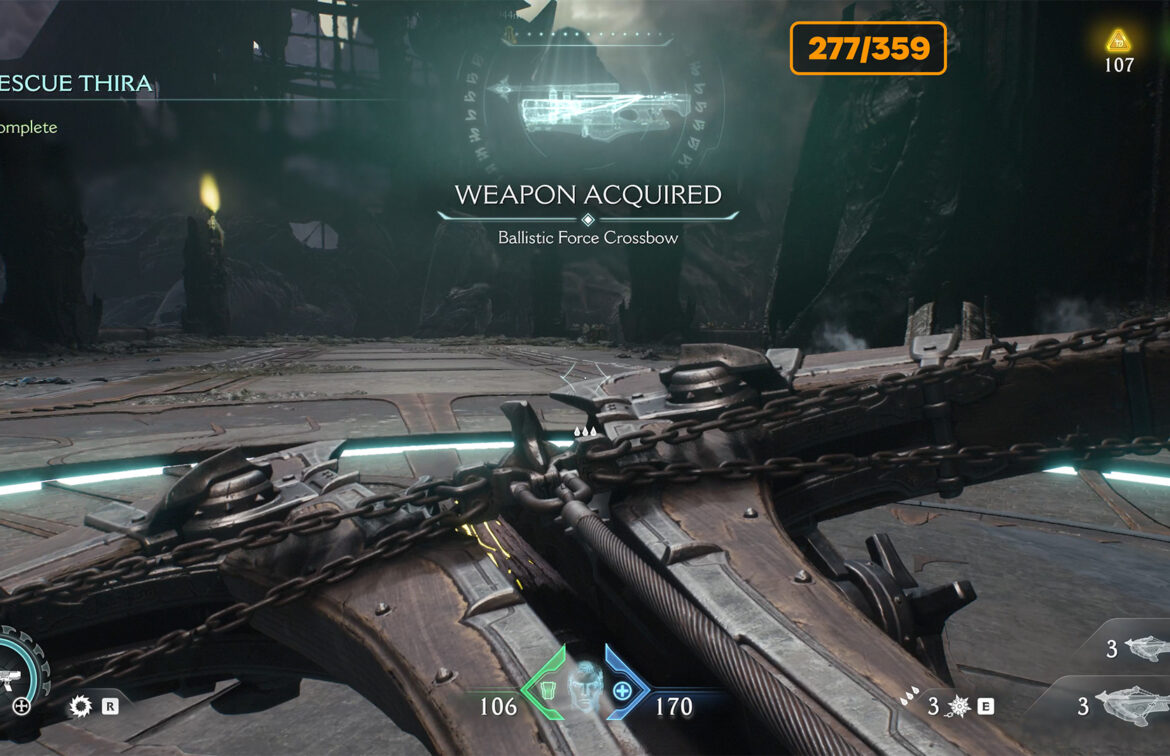 Further along the plot, you will get an extremely powerful weapon. This will be Ballistic Force Crossbow. Use it to destroy enemies and move on through the plot. The elevator will lift you higher. Confused locations await you here, so be careful.