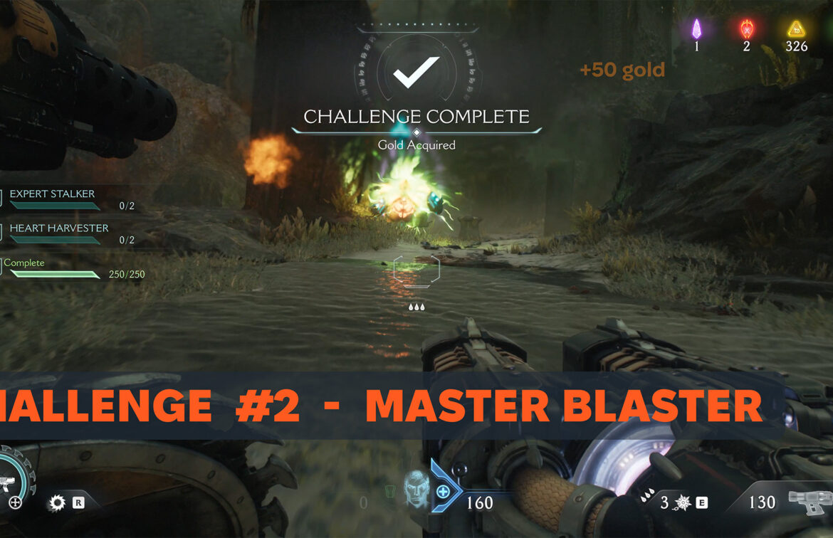 The second challenge is called Master Blaster. As part of this challenge, you need to activate the third rune of your shield, called Auto Turret. When you repel green monster attacks, you’ll have Turret to hit your opponent 250 times.