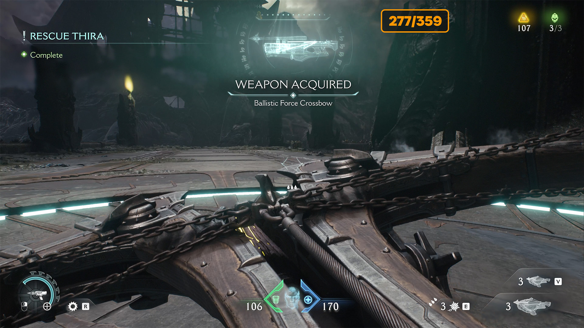 Further along the plot, you will get an extremely powerful weapon. This will be Ballistic Force Crossbow. Use it to destroy enemies and move on through the plot. The elevator will lift you higher. Confused locations await you here, so be careful.