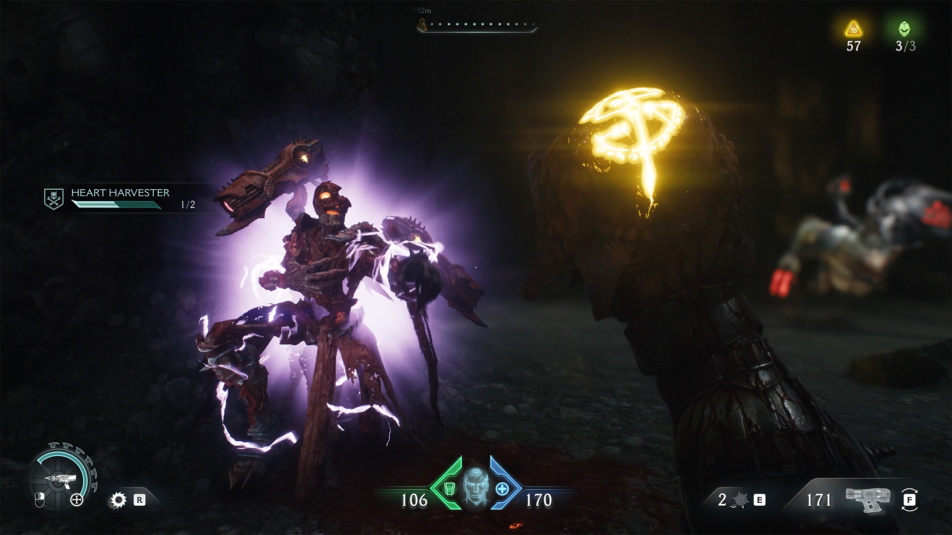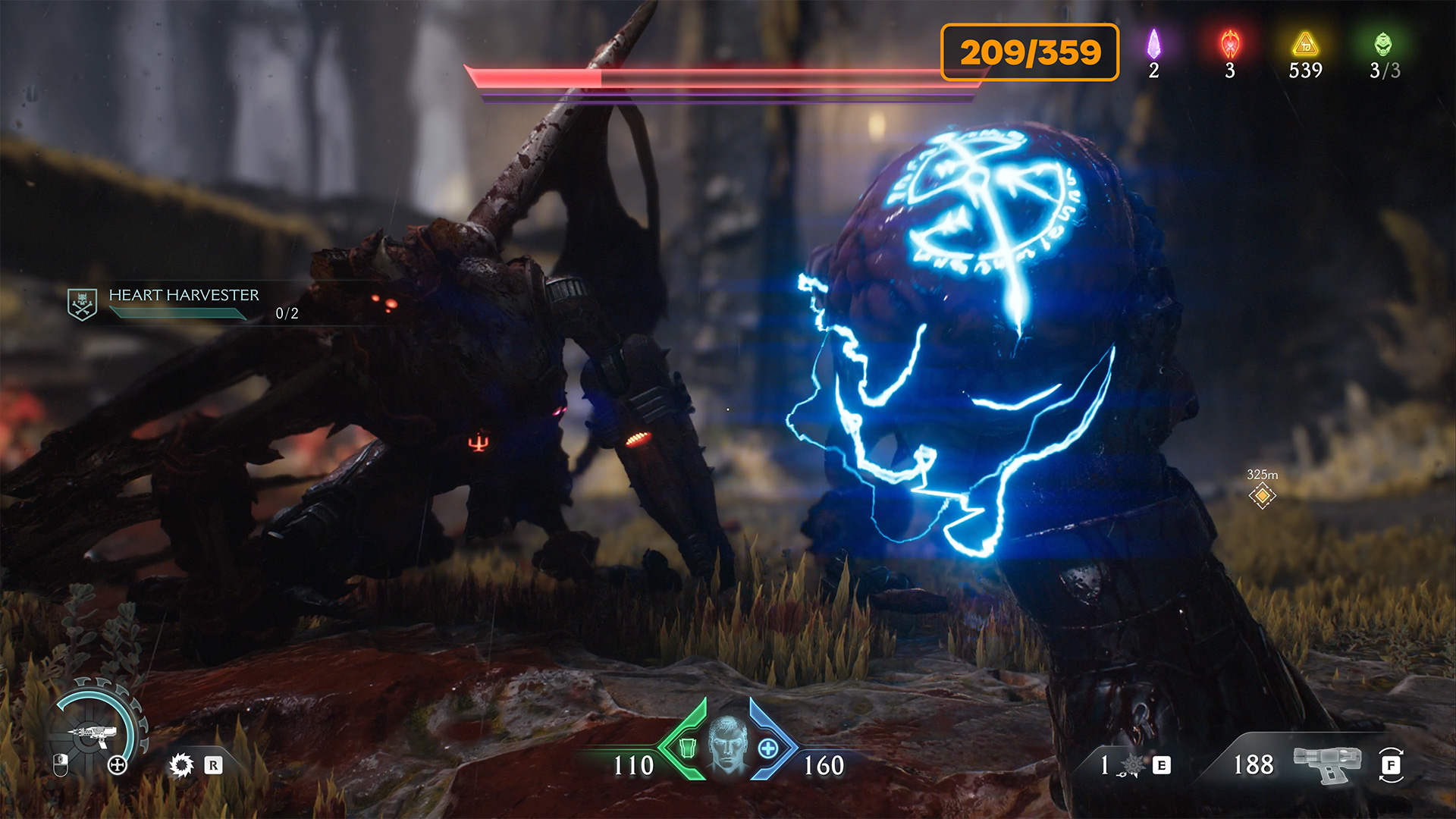 Accordingly, you need to defeat everyone. At the end of the fight, a mini boss will appear. FOR defeating him, you will automatically receive Demonic Essence – health. This is the first part of the Heart Harvester challenge. You will get the second and last part a little later.