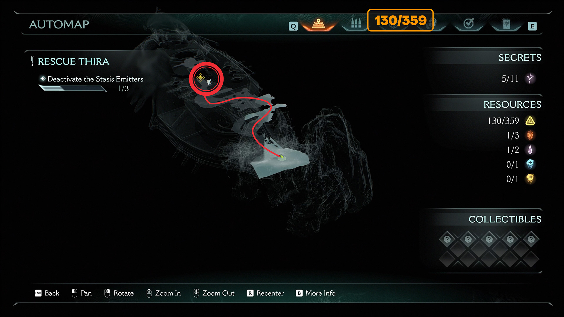 After a big battle, you will complete one of the necessary tasks in this chapter, namely deactivating the emitter. Now you can leave this zone and fly on, but do not rush to do it. Look at the small piles of gold scattered in front of you on the map. You have to go up the ramp to the left and collect 18 gold in this place.