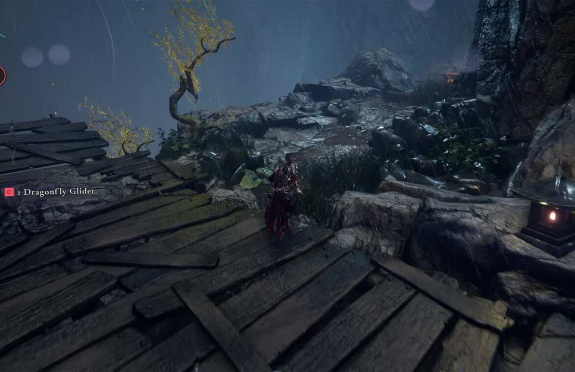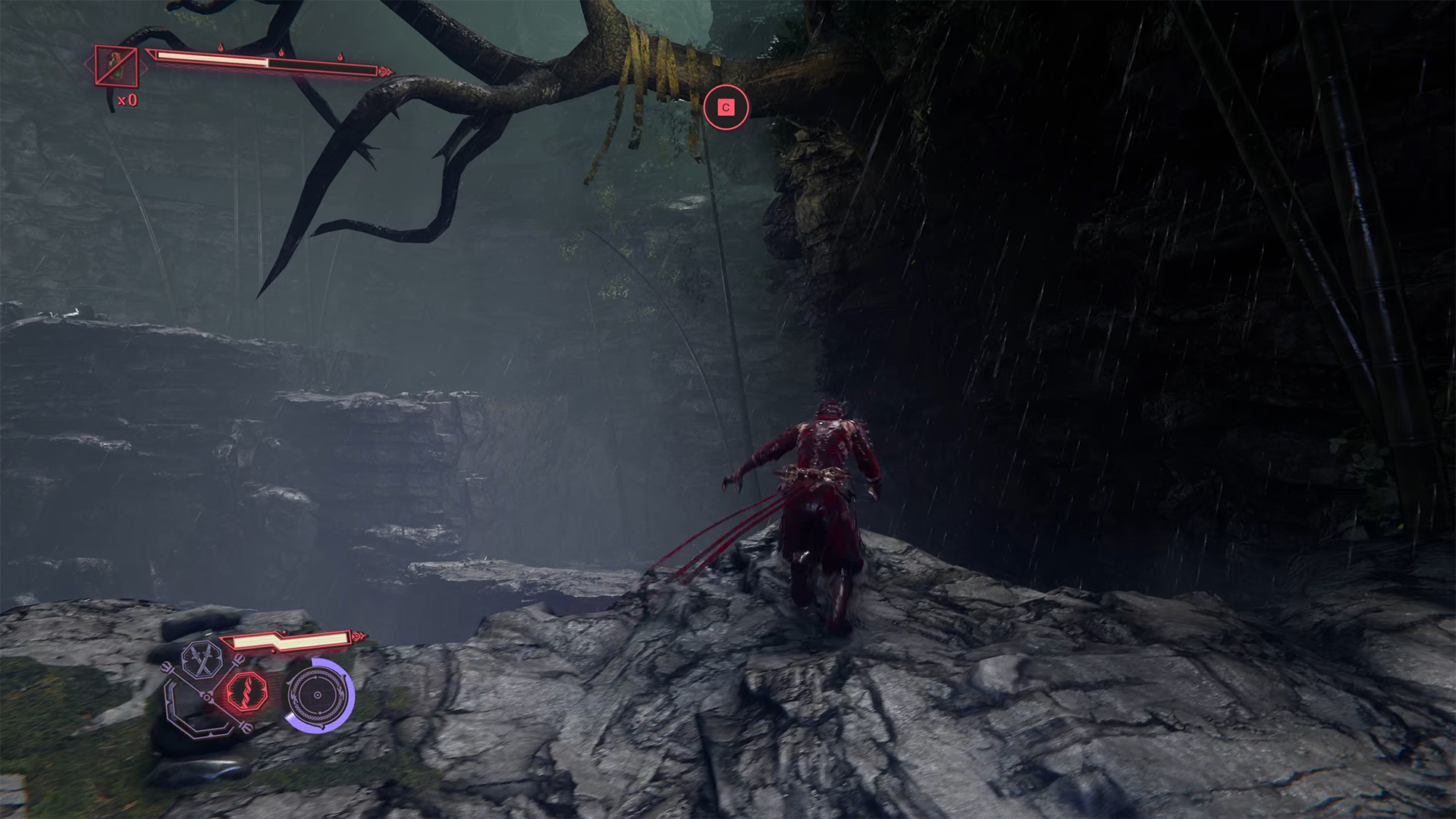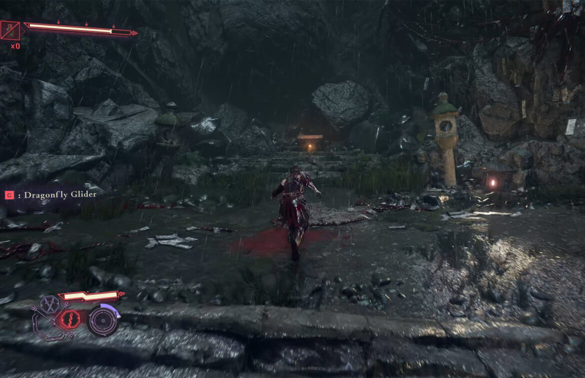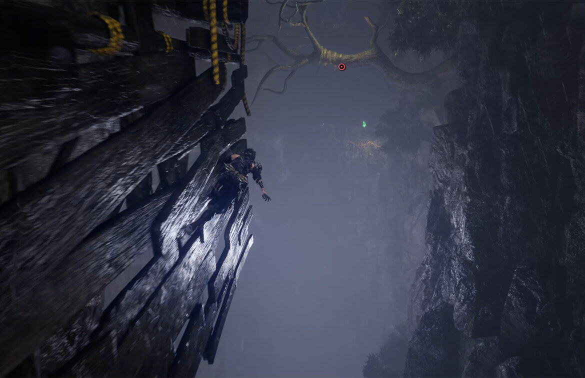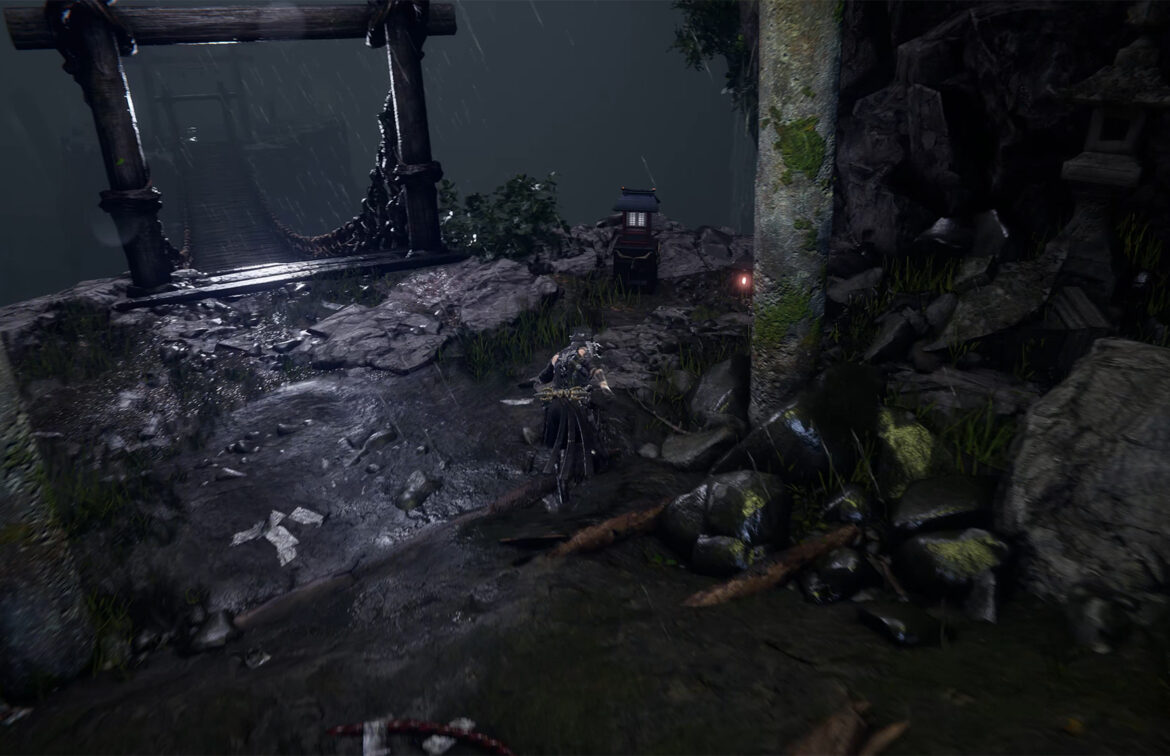 As you progress through the story, you will need to use your ninja skills, which you have already done many times, and skillfully navigate the obstacle course. Here, you will use Caddis Wire to cover a long distance and reach the next location unharmed. When you land on the ground, notice that there is a chest on the right. Open it and you will receive Crimson Blood Balm.