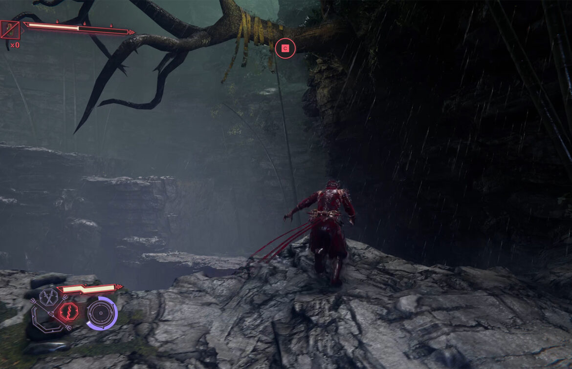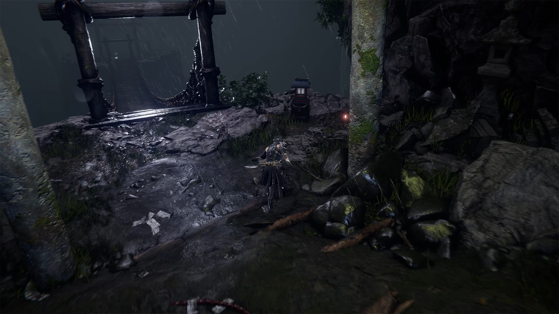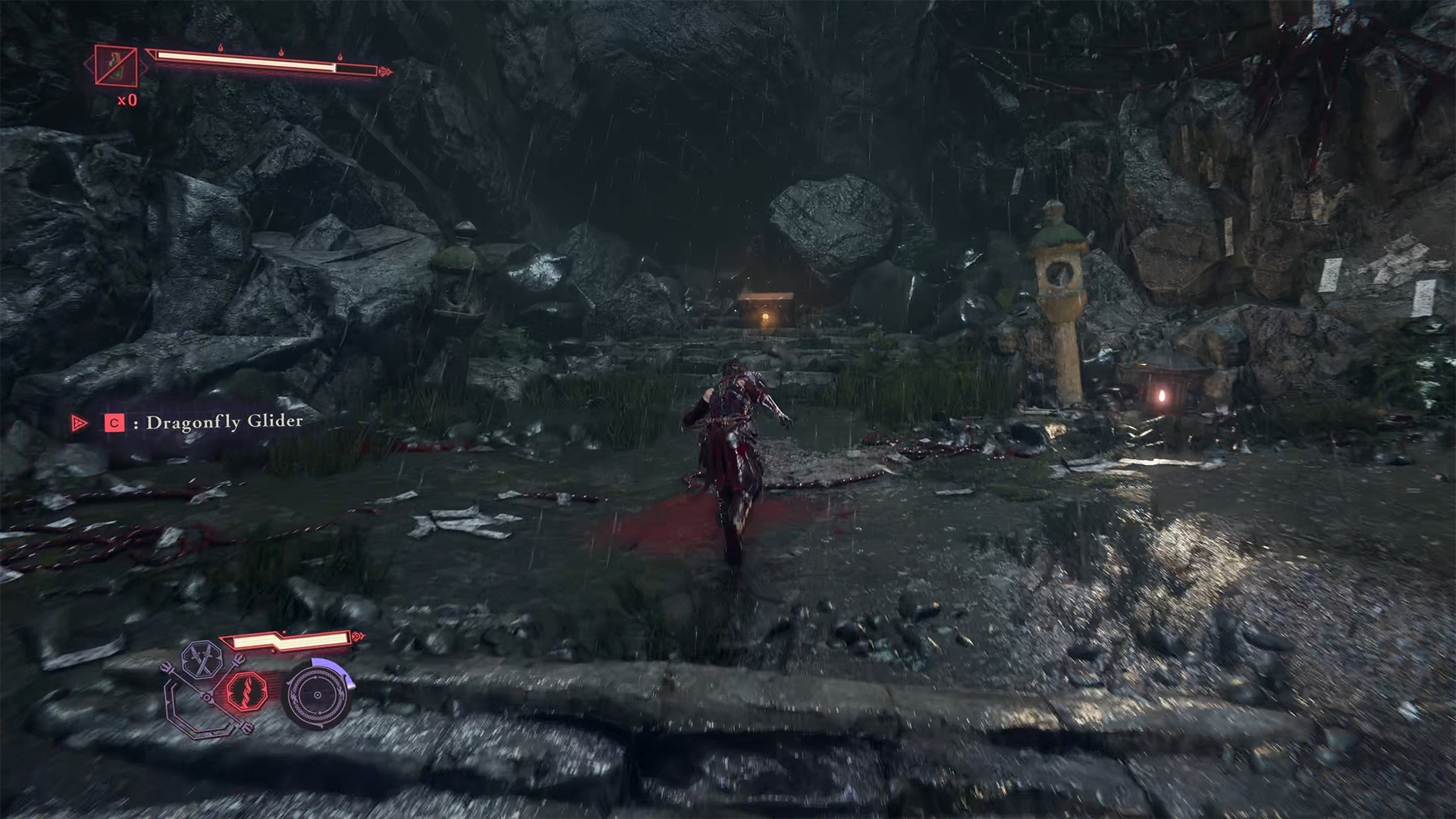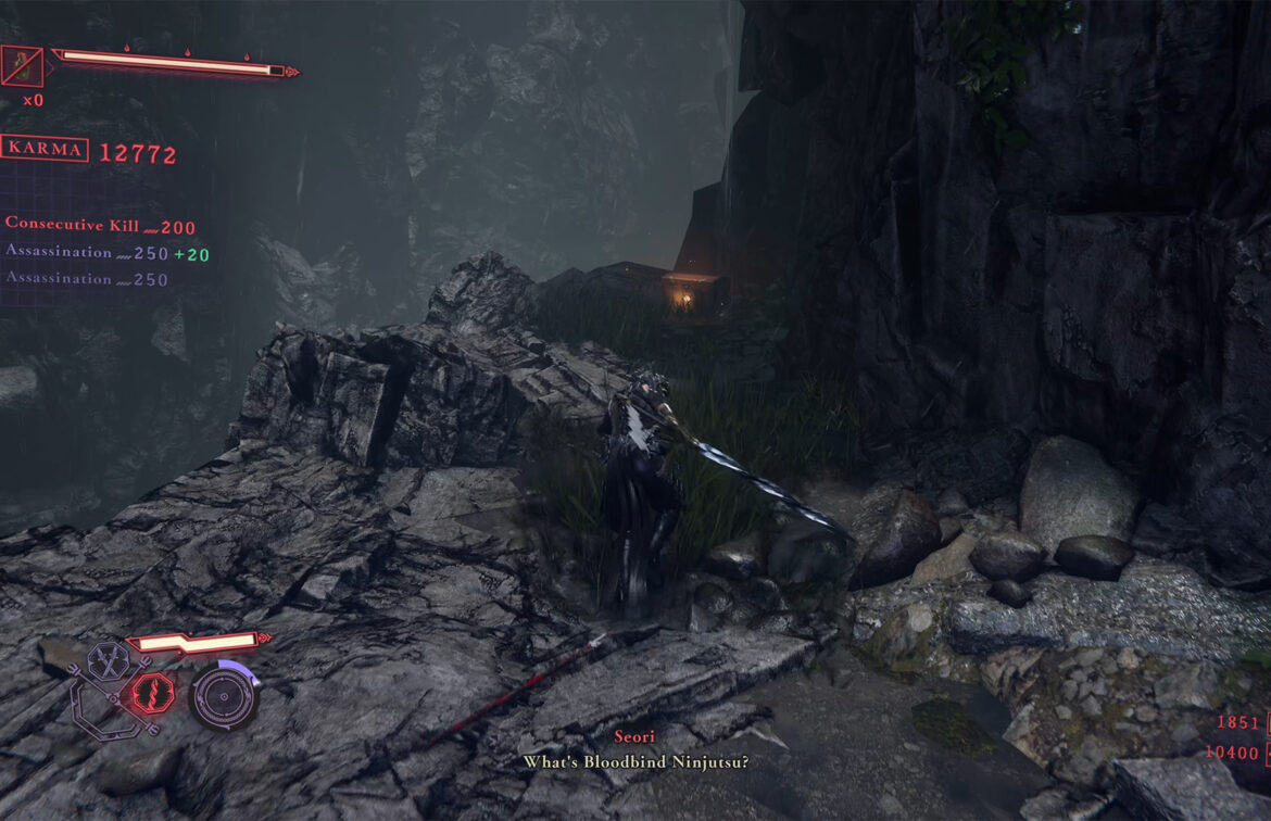 As you progress through the story, you will need to use your ninja skills, which you have already done many times, and skillfully navigate the obstacle course. Here, you will use Caddis Wire to cover a long distance and reach the next location unharmed. When you land on the ground, notice that there is a chest on the right. Open it and you will receive Crimson Blood Balm.
