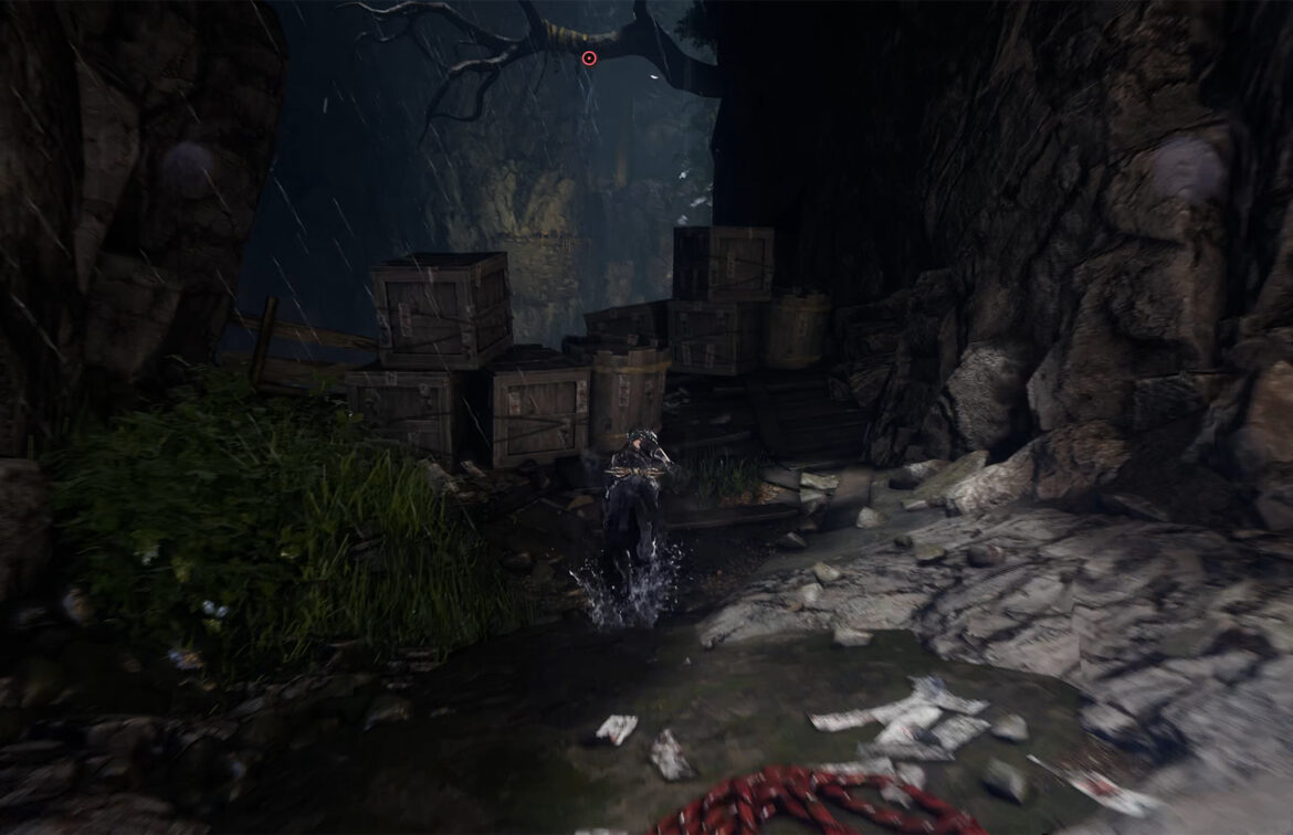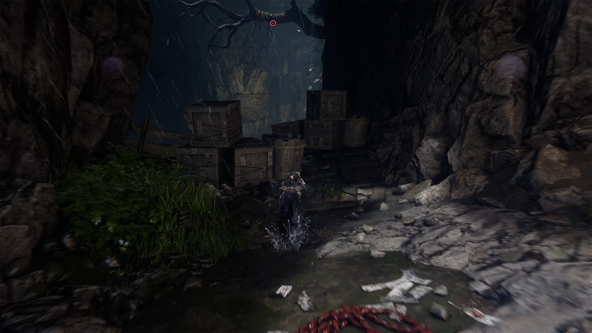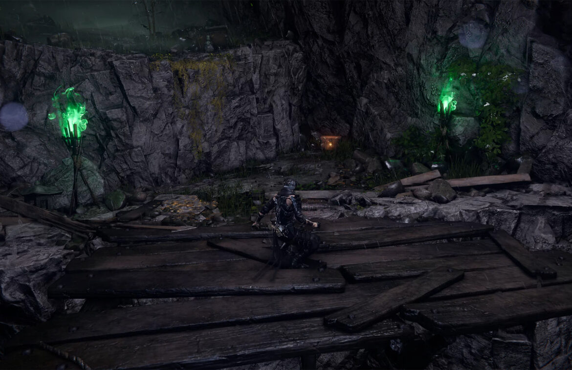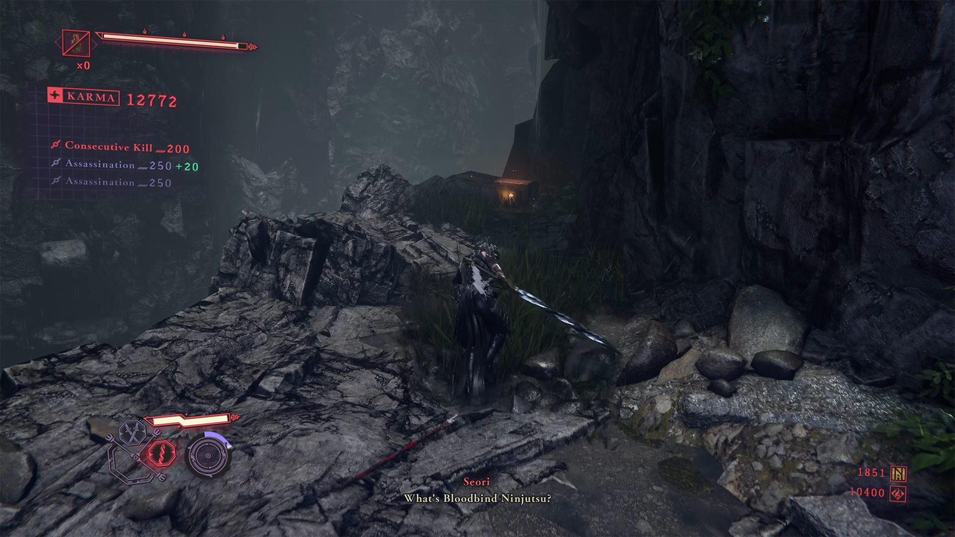 As you progress through the story, you will need to use your ninja skills, which you have already done many times, and skillfully navigate the obstacle course. Here, you will use Caddis Wire to cover a long distance and reach the next location unharmed. When you land on the ground, notice that there is a chest on the right. Open it and you will receive Crimson Blood Balm.