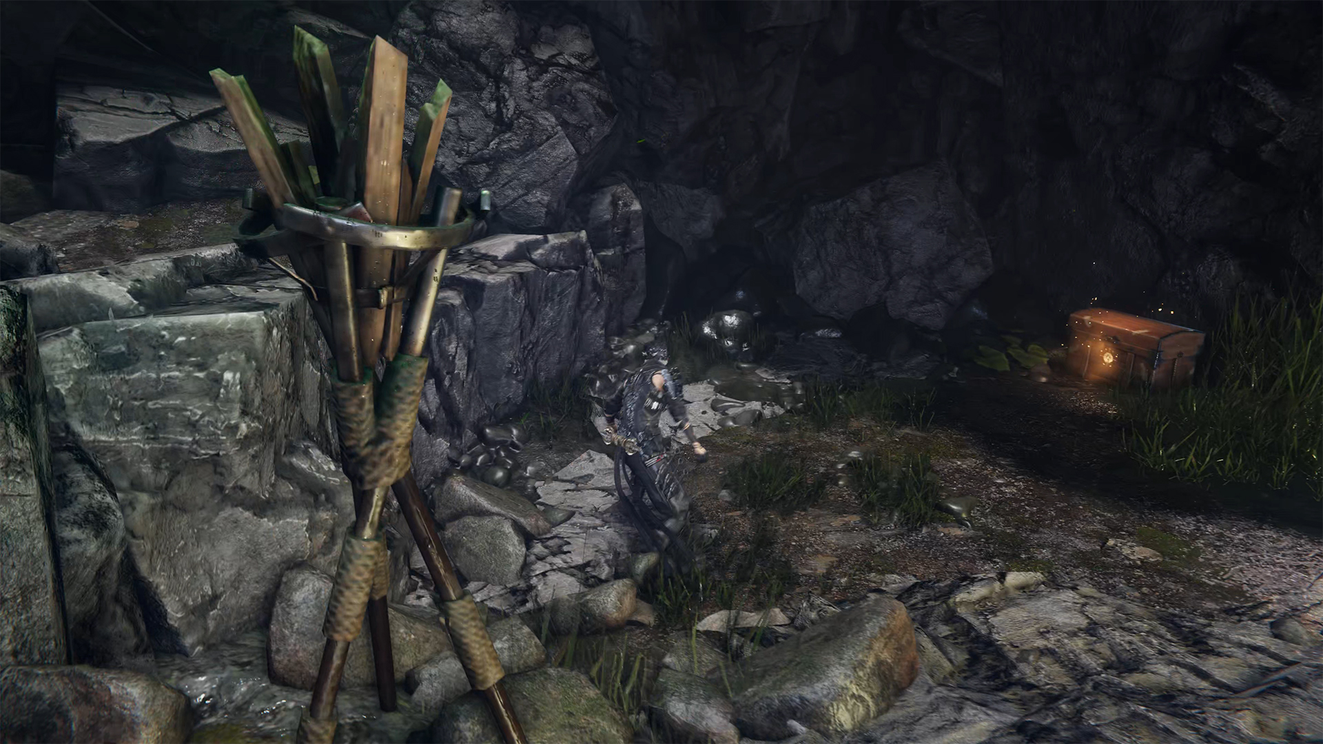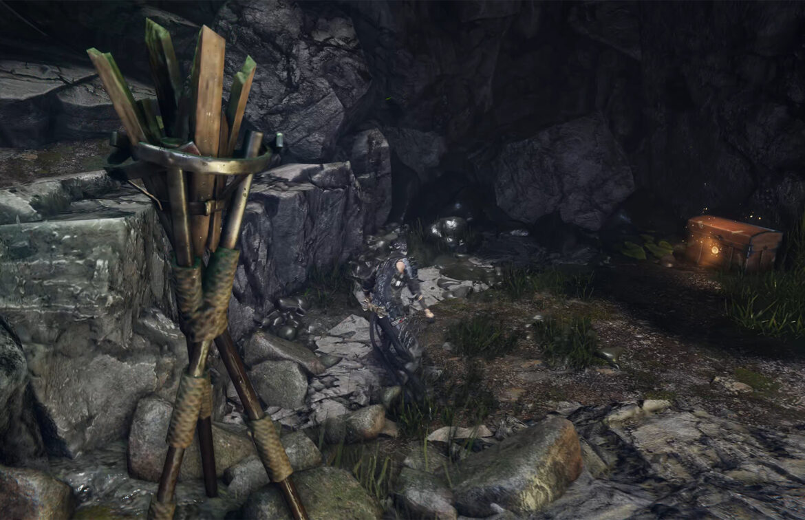 After completing the quest, you must leave this place by a different route than the one you came in. Move forward by jumping onto the tree branch, and you will soon find yourself in a cave. Here you will see two chests. In the first one you will find Life Elixir, and in the second one you will find Incense of Rebirth.