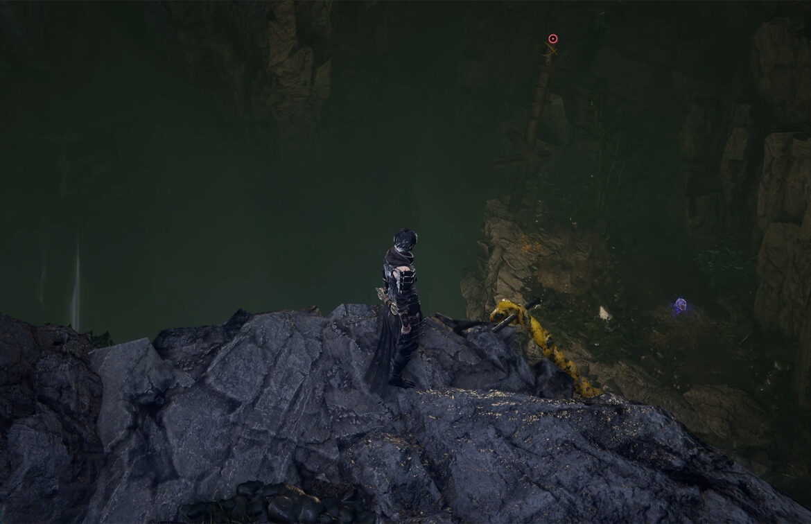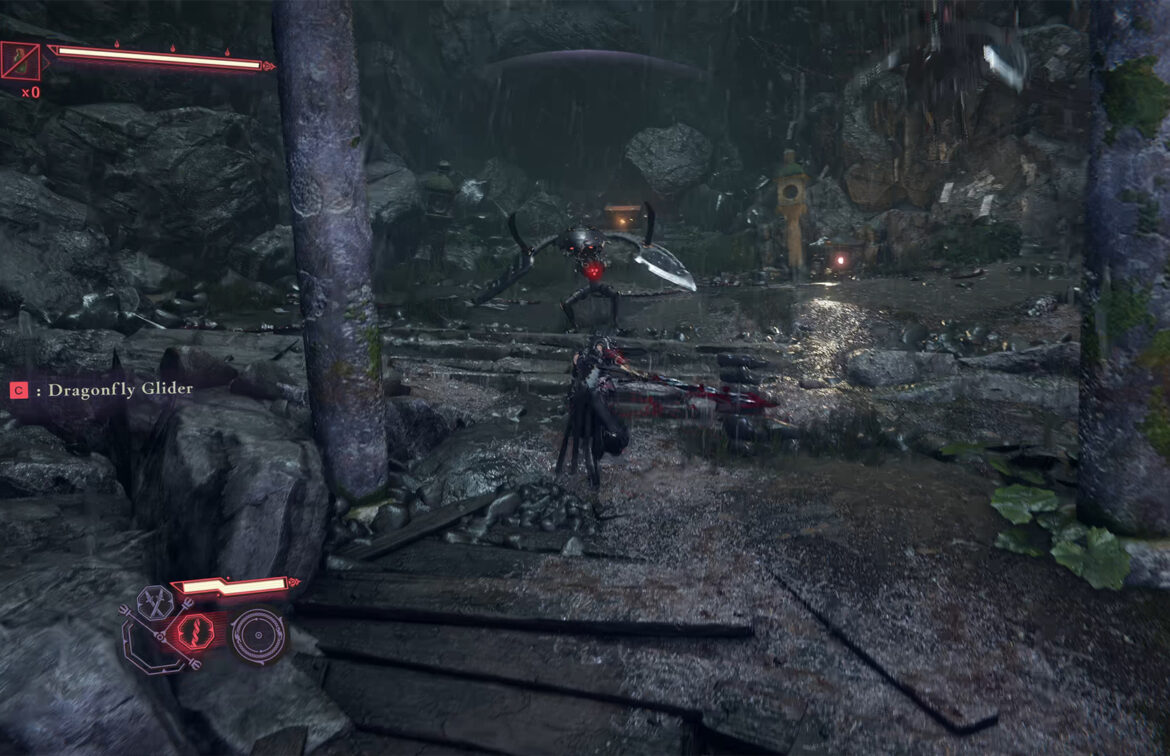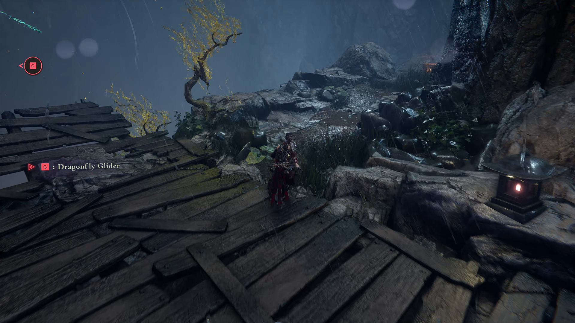 When you exit the cave, you will see an animation of a large air current. Here, you will have a dialogue with Umi, and then you will need to proceed to the second DarkNest Terminal. At this point, you will receive the Dragonfly Glider to traverse the large chasm. On the right is the entrance to the place where you can use your Glider.