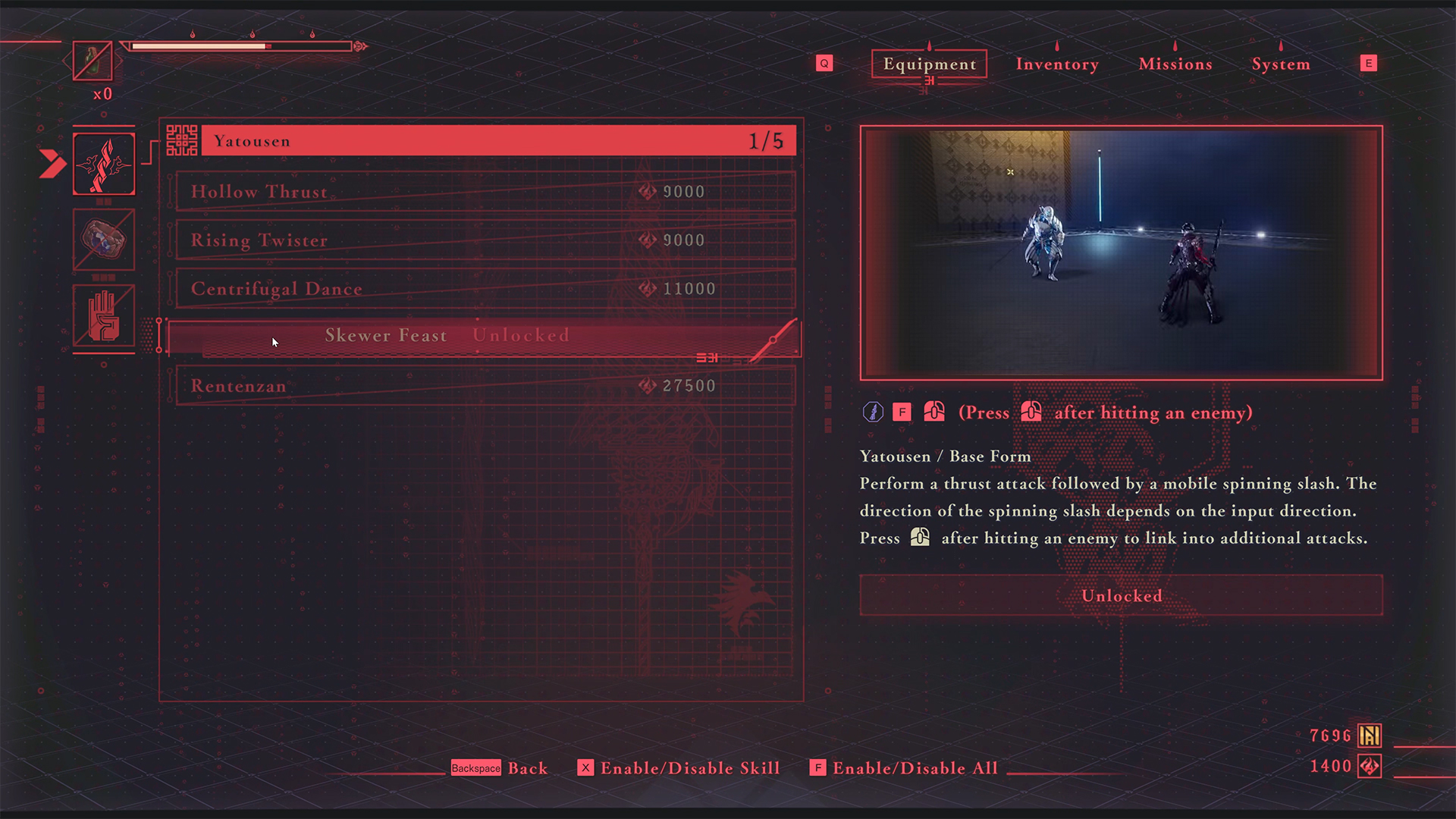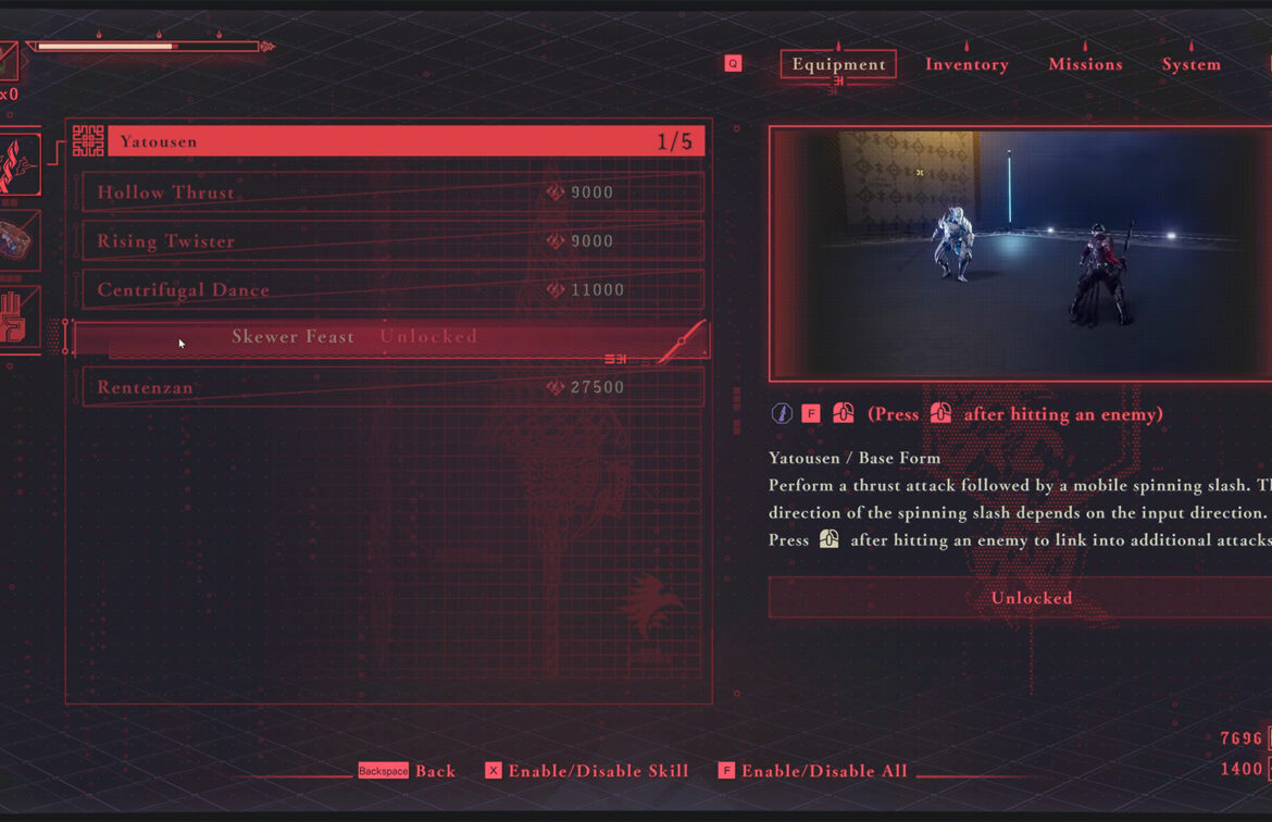 Next, on the suspension bridge, you will encounter Armored Sickles again. To easily defeat these enemies, you should learn the Skewer Feast skill for Yatousen. Using this skill, you will quickly move away from the enemy. Armored Sickle will not be able to react to your movements, and you will be able to easily attack it from the side or from behind with normal attacks that it cannot block.