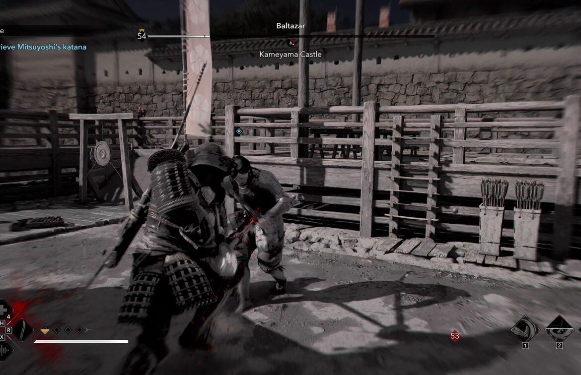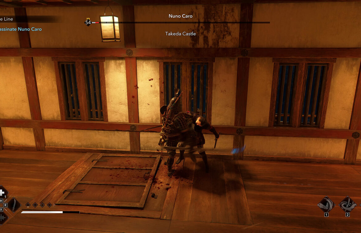 As Yasuke stealth isn’t a very viable option, so disable any alarm bells you see with your teppo or bow. You’ll reach a double door set as you climb. Use it to start the encounter with Nuno. As you climb the castle, kill Nuno Caro’s men to track him down. Nuno Caro can be found at the top of Takeda Castle. He will trigger a boss battle. Nuno Caro uses a sword as well as a pistol, and his fighting style is similar to that of some of his soldiers. You can parry or block his main sword attack, which is a combination of up to four strokes. Avoid the shot of his pistol when you see it glow red.