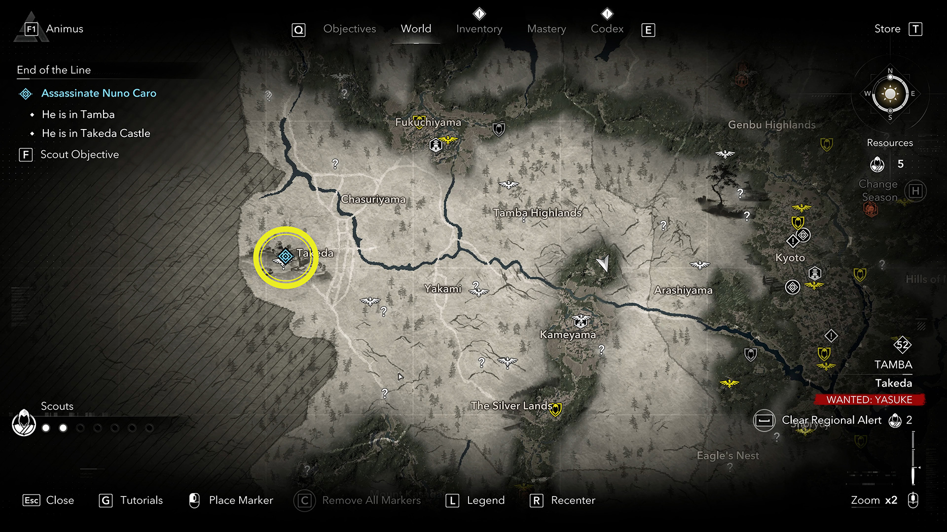 Nuno Caro is Yasuke’s ultimate goal. Nuno is about to leave Japan. Takeda Castle is in Western Tamba. Takeda Castle sits high on a mountain, at the end a winding route. Use Pathfinder to find the best way to get there. Takeda Castle has many enemies who can sound alarm bells to alert you of their presence.