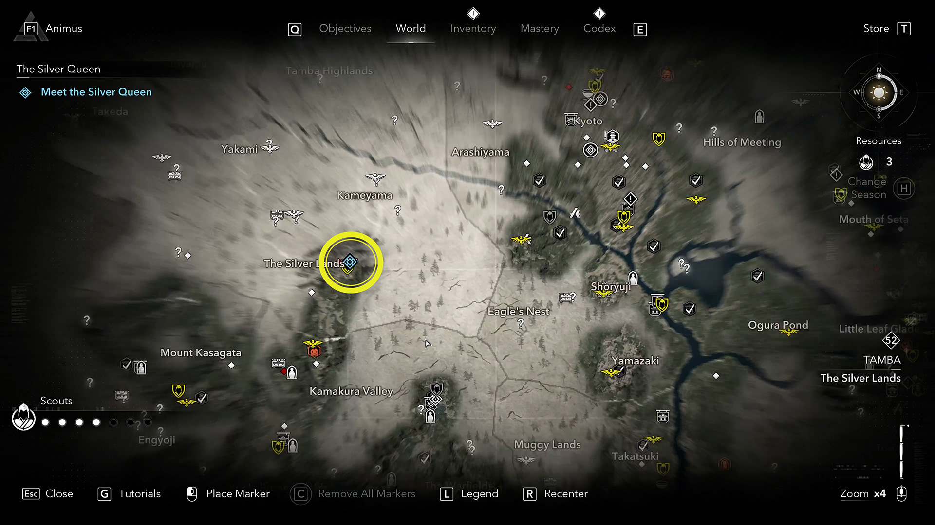 Now the map shows the place where you are to meet Akechi Mitsuyoshi. Accordingly, if you come without a katana and do not defeat Baltazar to take it, the story will not continue. Therefore, complete the previous task. Next, you will go inside the temple, where Silver Queen awaits you. Here you will see scenes of the meeting and the presentation of the family katana, but most importantly, you will find out where to look for the main enemy, Nuno Caro.