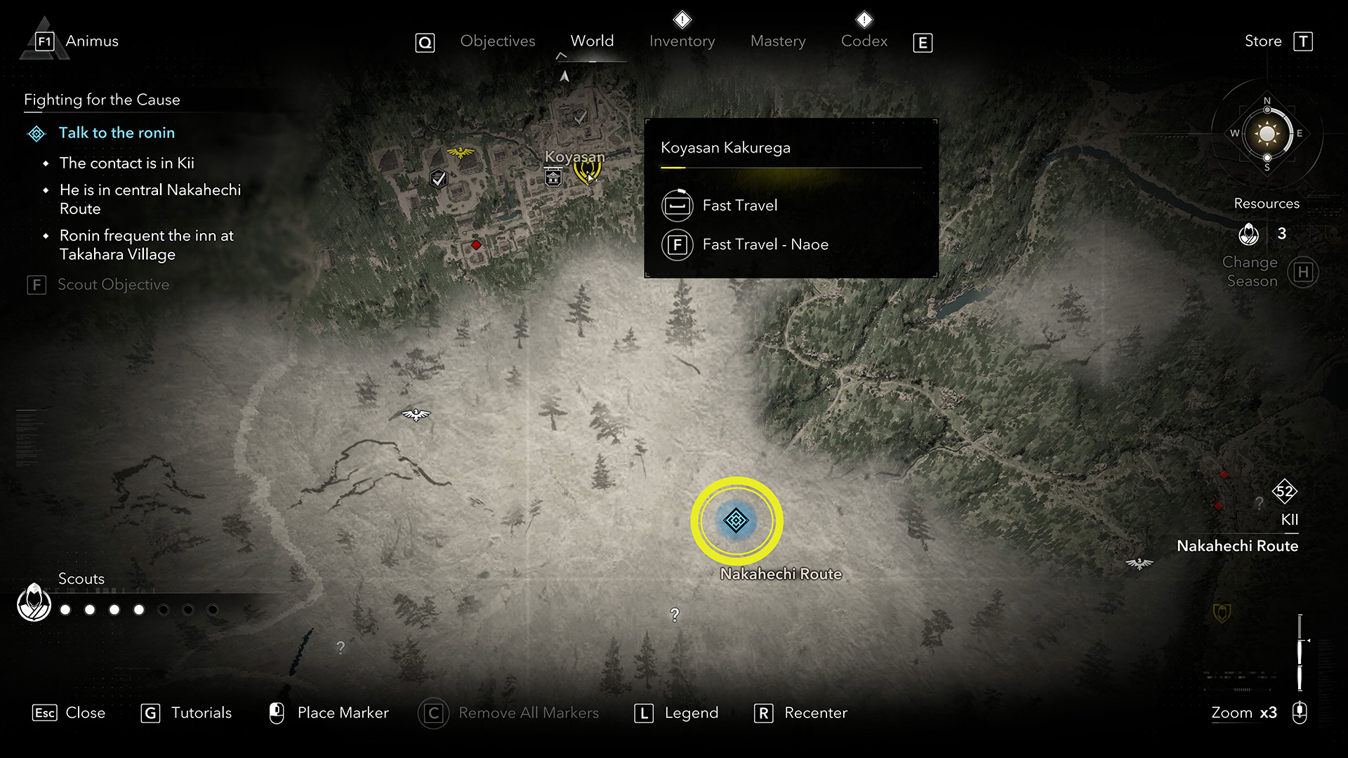 The next target you need to find is Kimura Kei. But to do that, you need to complete an additional quest called “Talk to the Ronin.” I’ve marked the location of this conversation on the map. After the conversation, you will have a difficult mission, so prepare for it as much as possible. Upgrade your weapons and distribute your skills. You will face many enemies that you must defeat. When you are ready, go to the location I have marked on the map. There you need to find Kumabe Ujiie. Kumabe Ujiie can be found in the northern Kii.